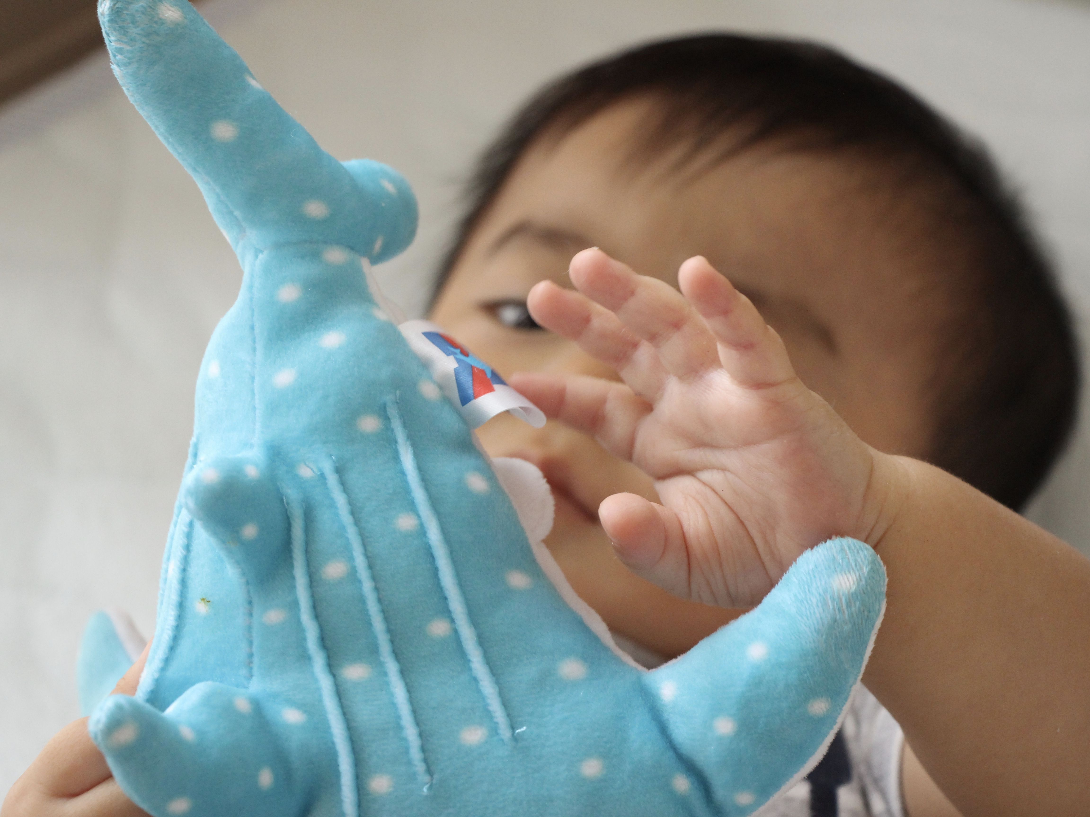 (ぬいぐるみ本体よりもタグの方が気になるご様子。なんでだろ。)