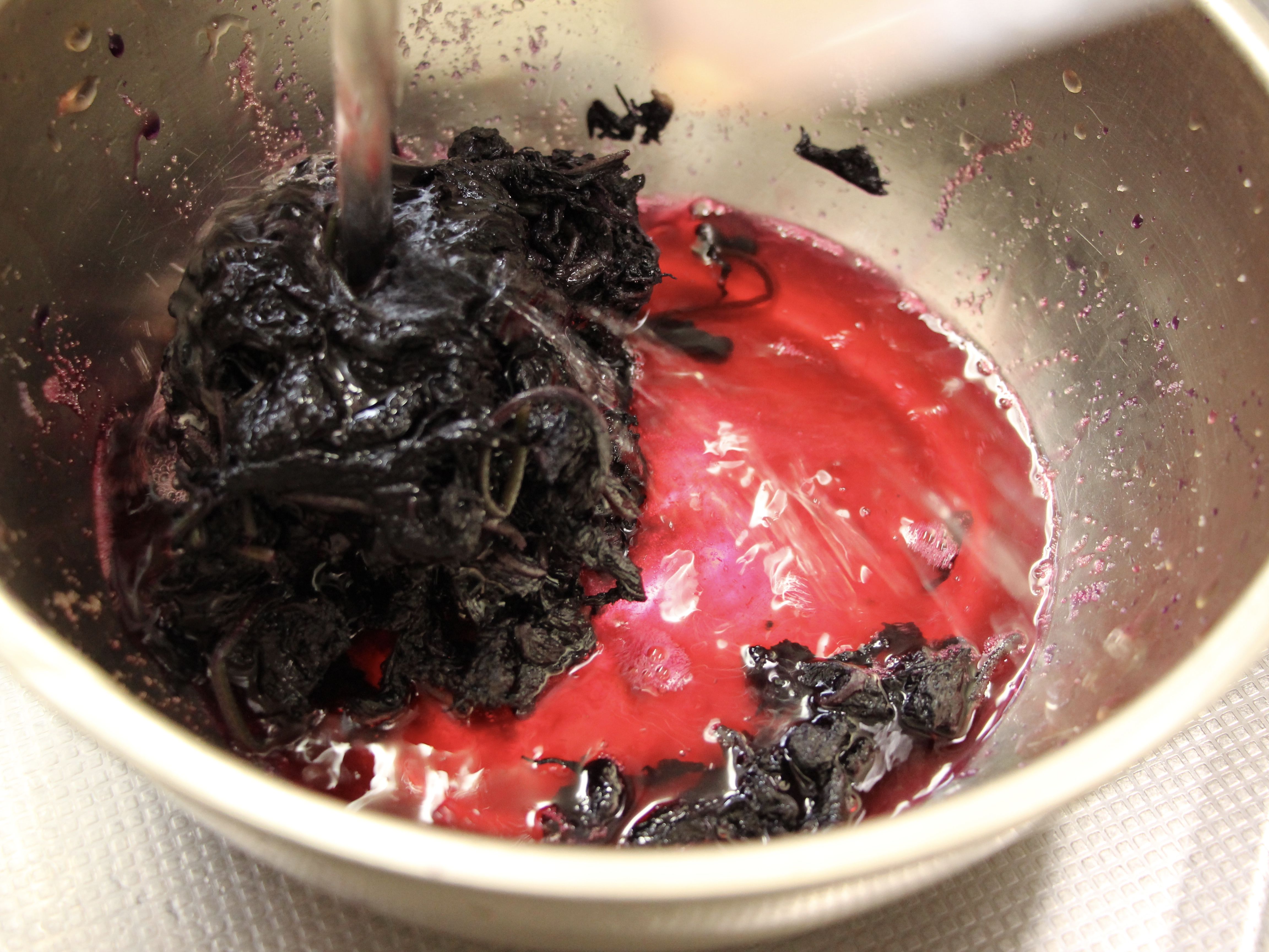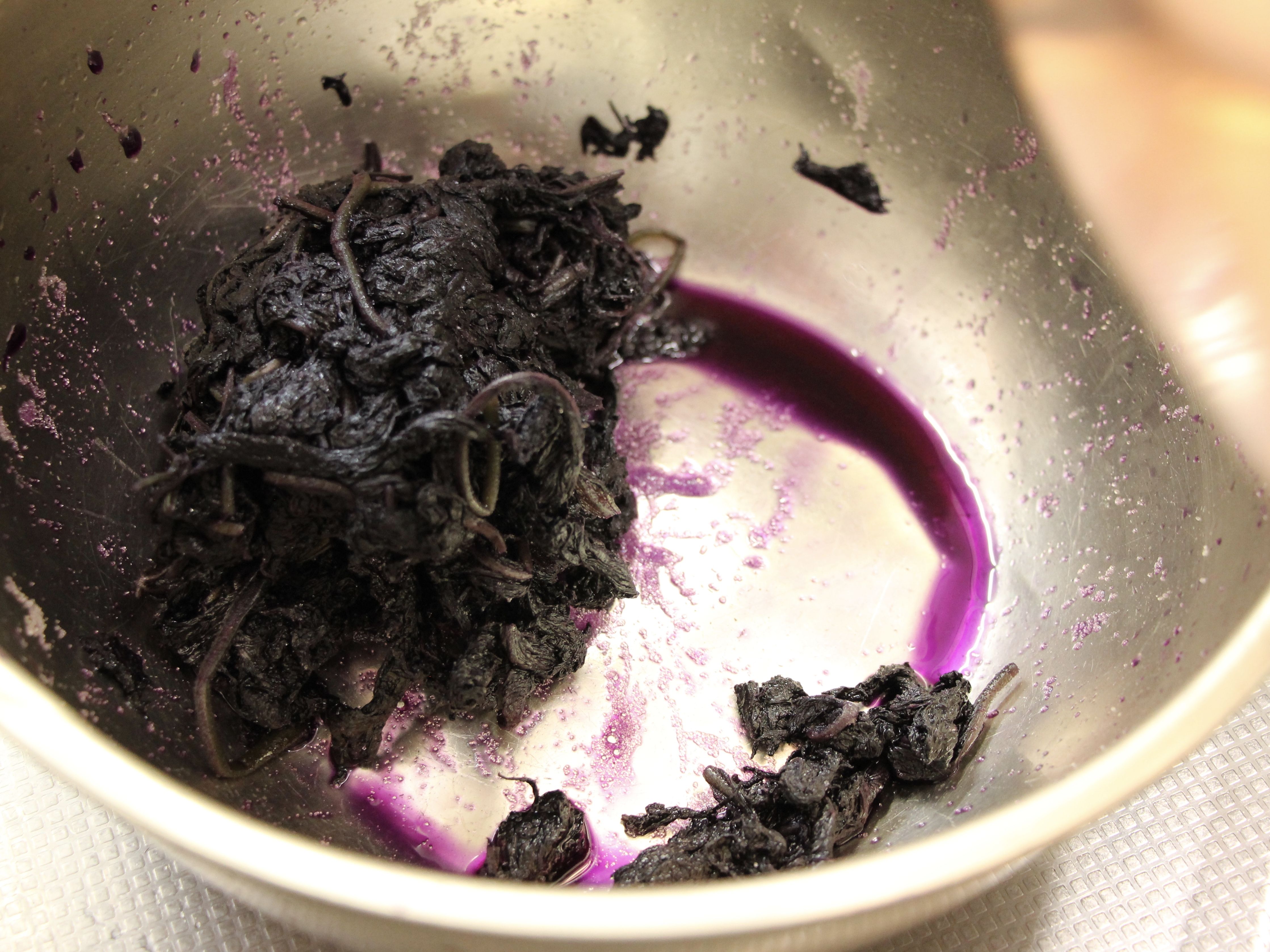 チビマタタがご機嫌を取り戻したところで、いよいよ今回の梅干し作り〜赤シソ投入編〜もクライマックス!!