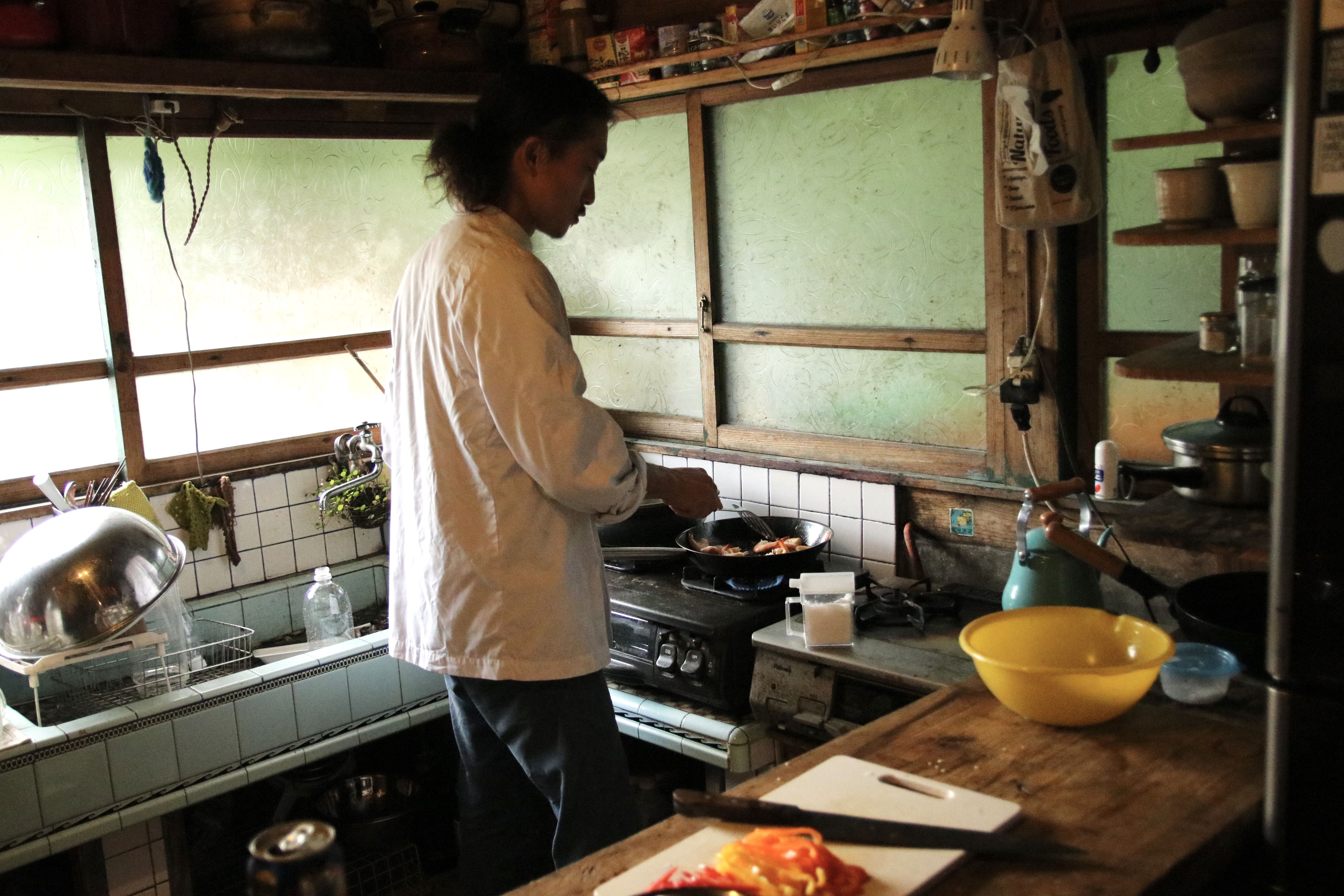 お昼過ぎにお邪魔してたんですけど、ネジさんは「車を修理しに行かなきゃいけないから」と言ってしばし私たちを観光に送り出してくれて、夕方に再びお家にお邪魔しました。(その間、ネジさんオススメのカフェに行ったり観光名所”幸島”を眺められる海に行ったりしました。)