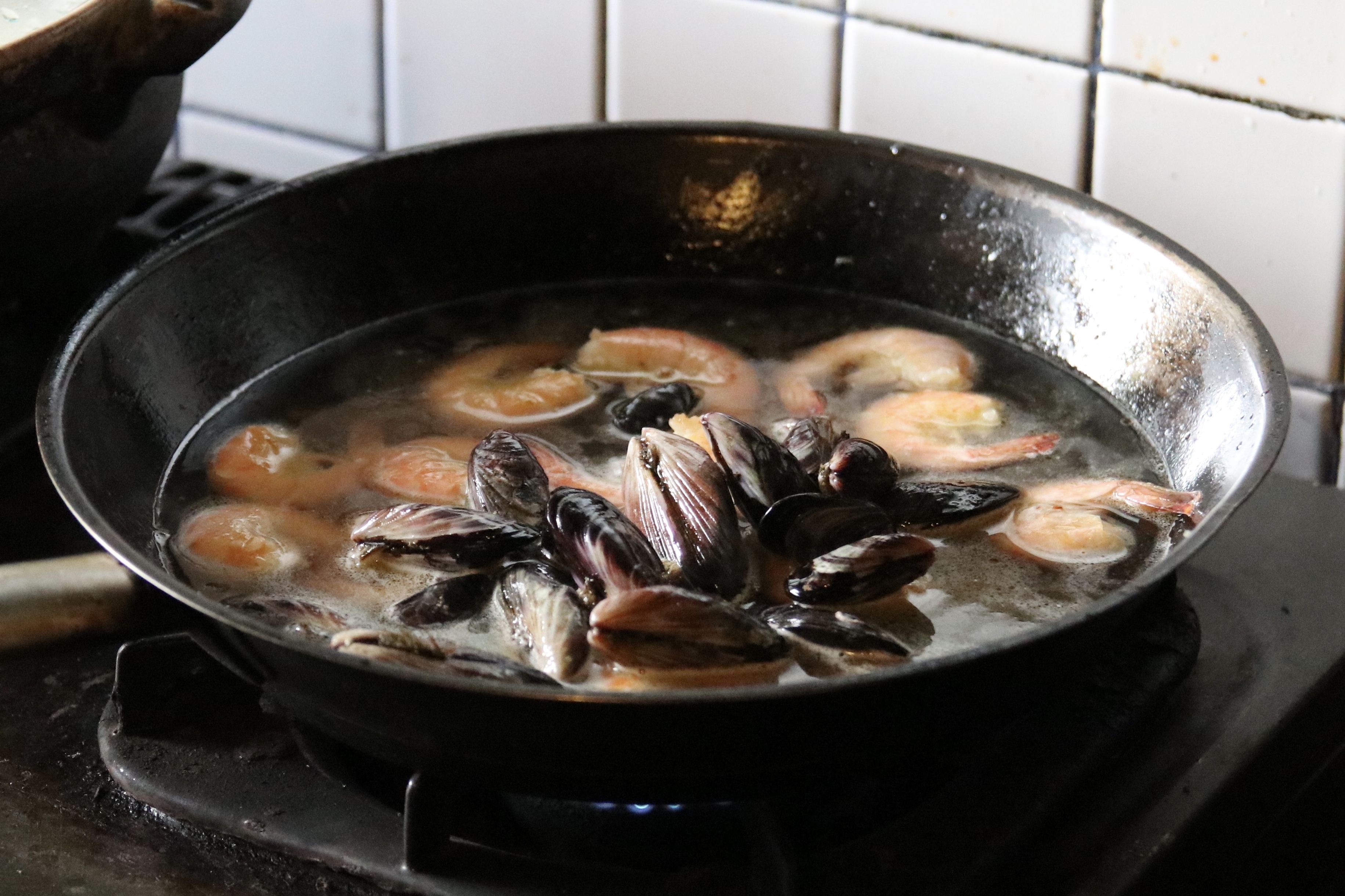 そんなこんなで、パエリアがグツグツと美味しそうな音を立てて出来上がりました。
