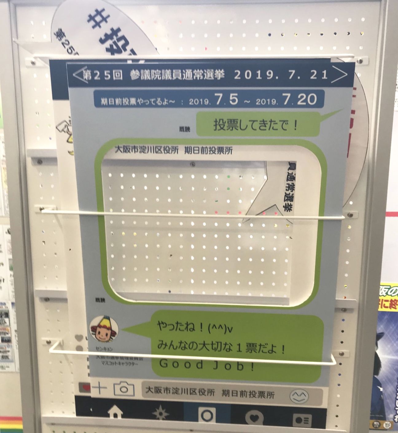 センキョン・・・・大阪市選挙管理委員会マスコットキャラクター。それやのにこの子、標準語設定なのね!笑