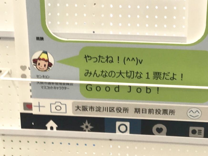 よく見ると「投票してきたで!」はガッツリ大阪弁やのに、返事はなぜか標準語。
