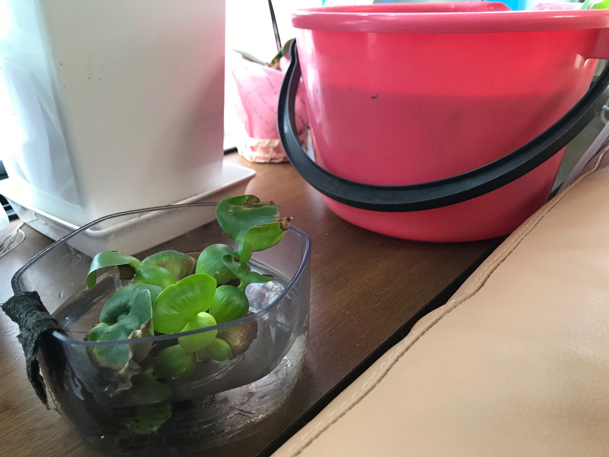水槽とメダカちゃんたちの横のバケツで入院中…