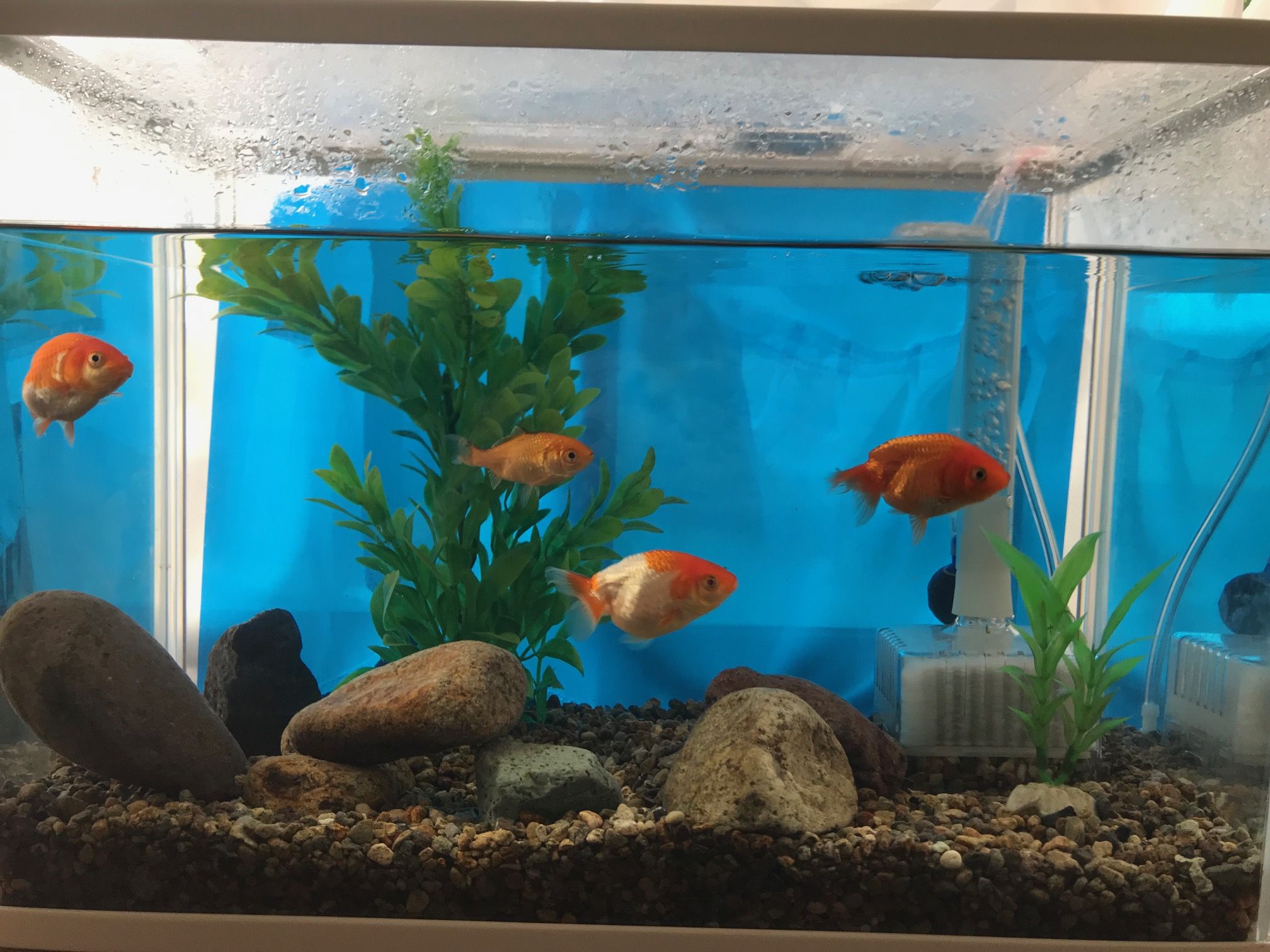 突然みんなと離れ離れになって寂しいかなと思って水草風の置物も置いてあげました。