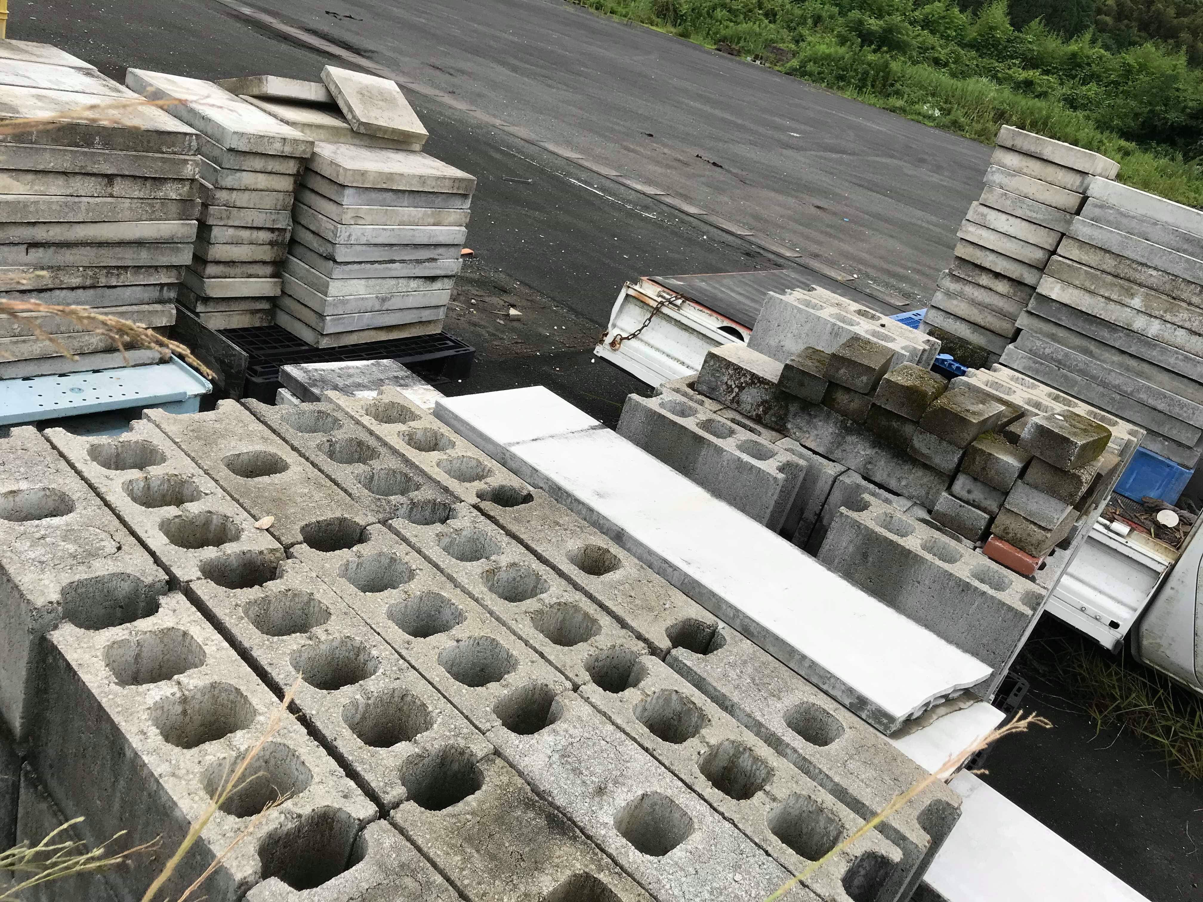 ホームセンターのデッドストックコーナー(ゴミ捨て場?)にコンクリート板やブロックが山積みされてるの発見!