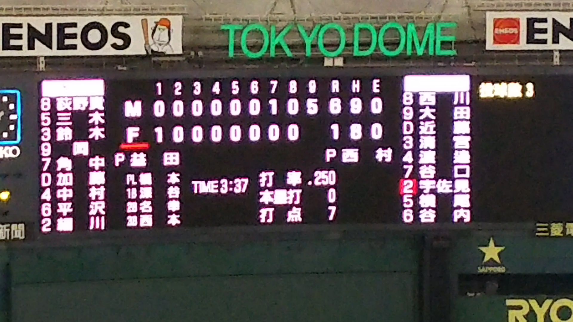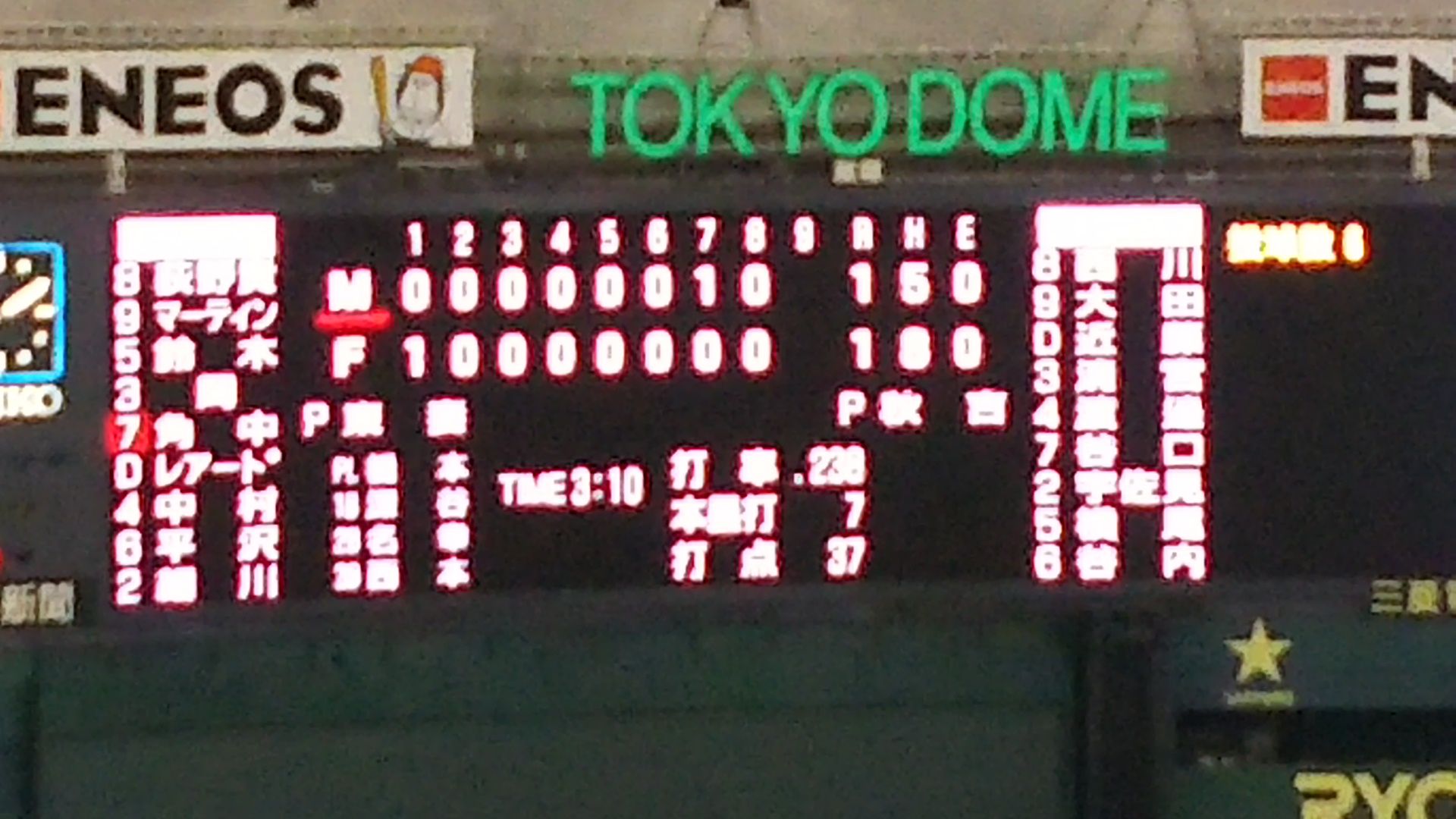 さて試合の方は日本ハムが1回に先制した後、何度かあった追加点のチャンスを活かしきれず、ロッテの方もなかなか点が入りません。