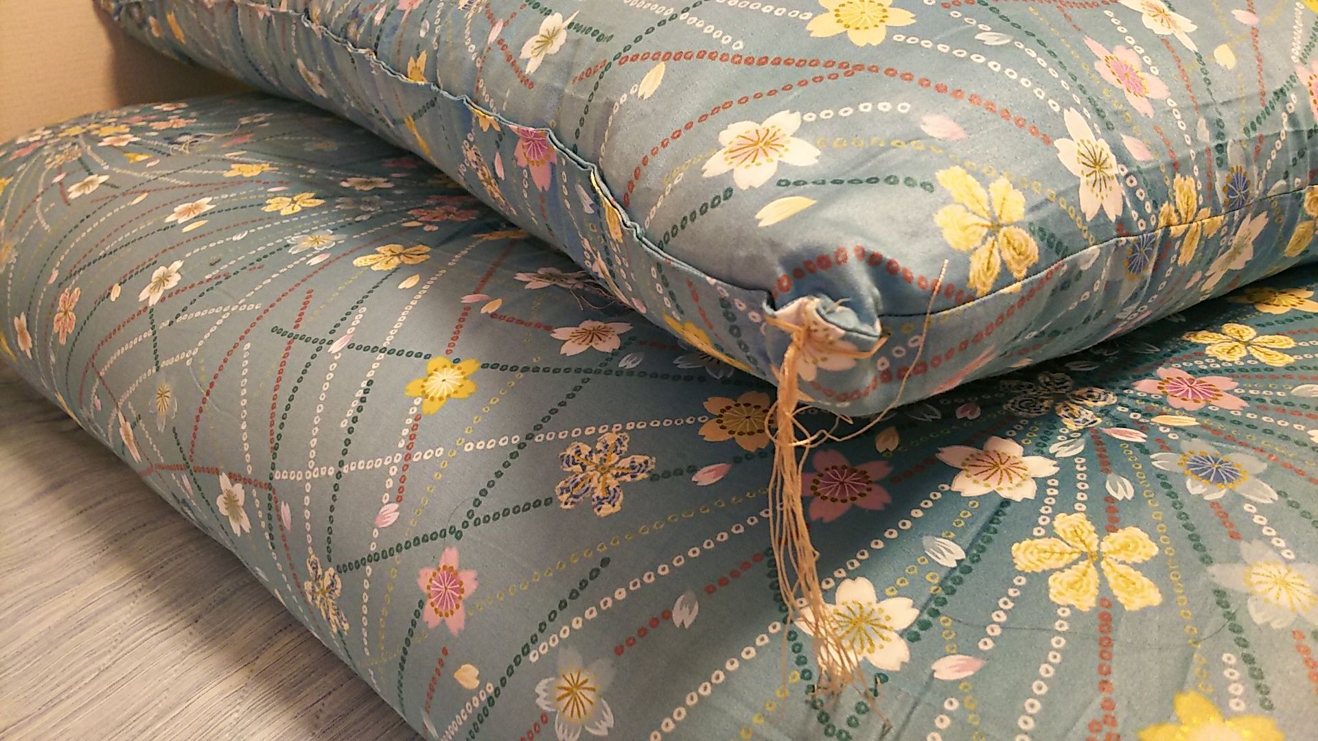 一流旅館の布団のような高級感さえ漂います。送る前はこの半分ぐらいの厚みしかなかったんですよー!ここまで変わると思ってなくて、比較写真撮っていなかったのが惜しい・・・!