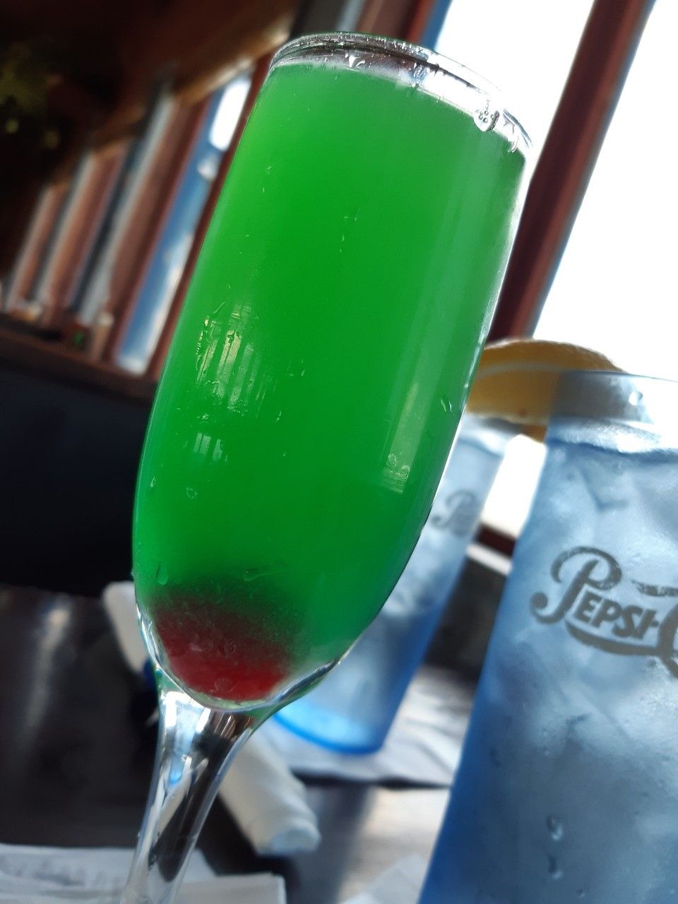 「Midori Melon Liqueur, Pineapple juice,champagne,Blue Curacao)