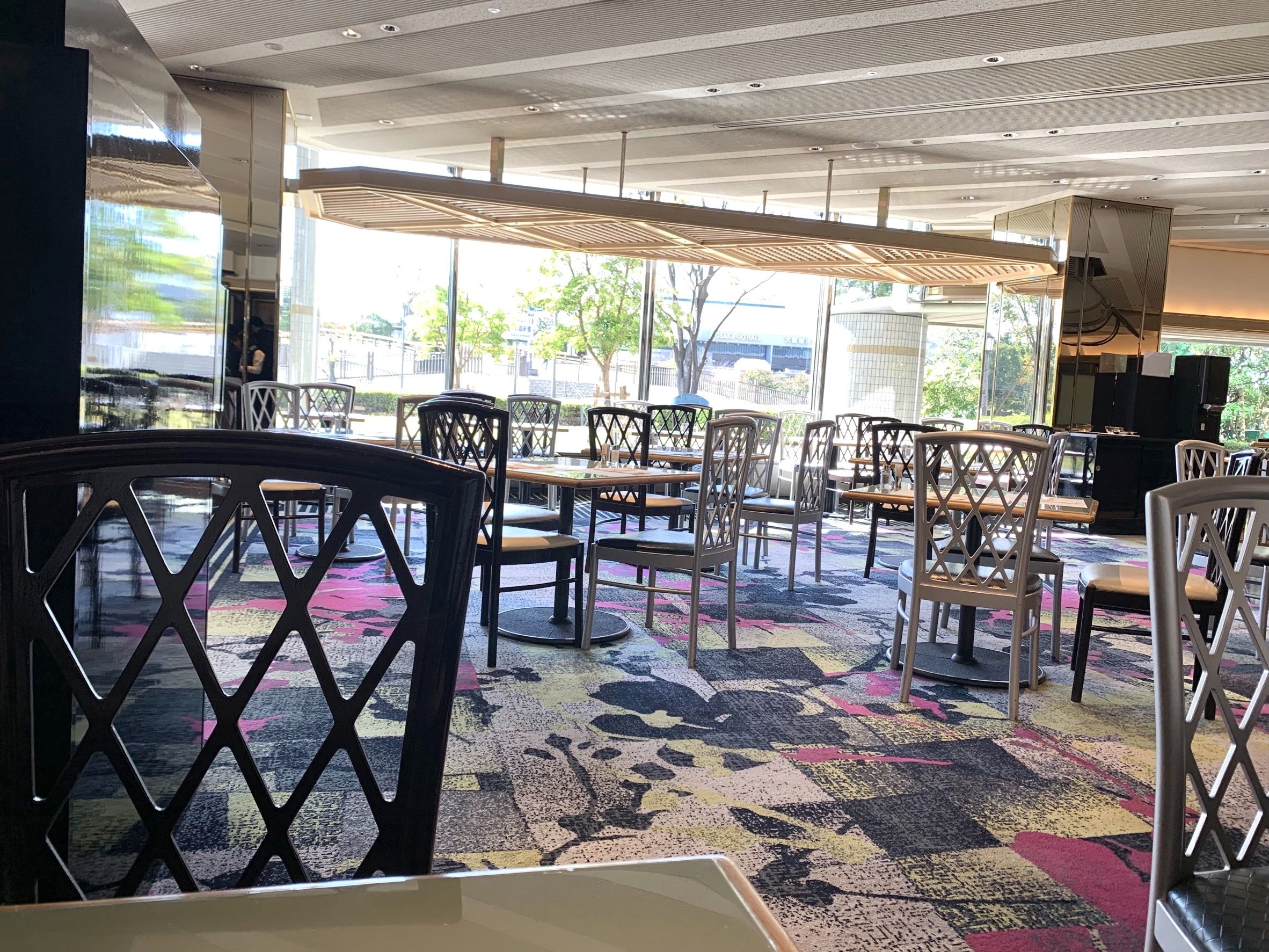 大阪のホテルニューオータニは、大阪城公園の目の前にあります。駐車場に車を停めて、お店へ直行。お昼前だからか、まだお客さんはまばらです。