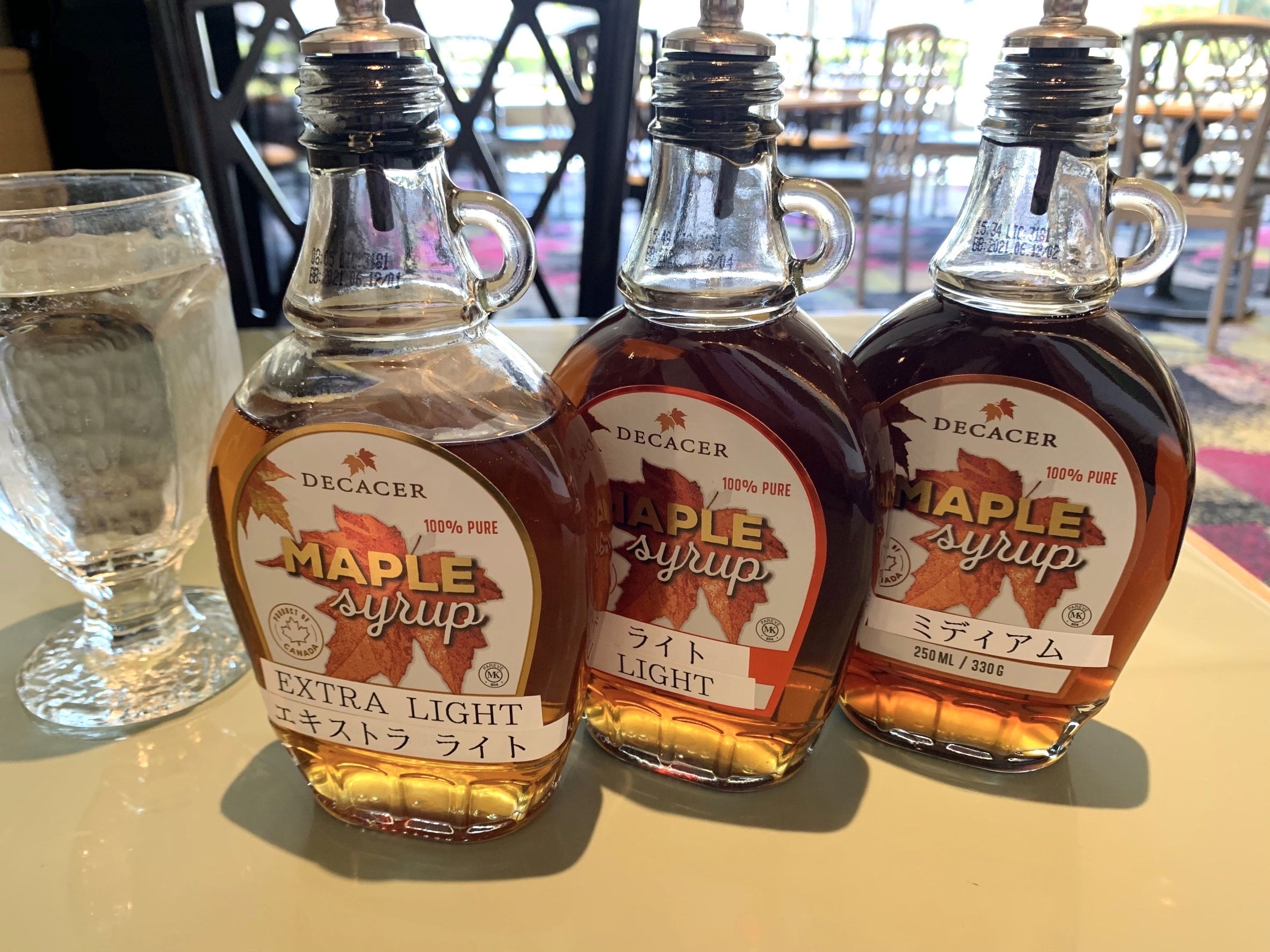 まず最初にやってきたのは、なんとメープルシロップ3種。どうやら濃さが違うらしい(語彙力)
