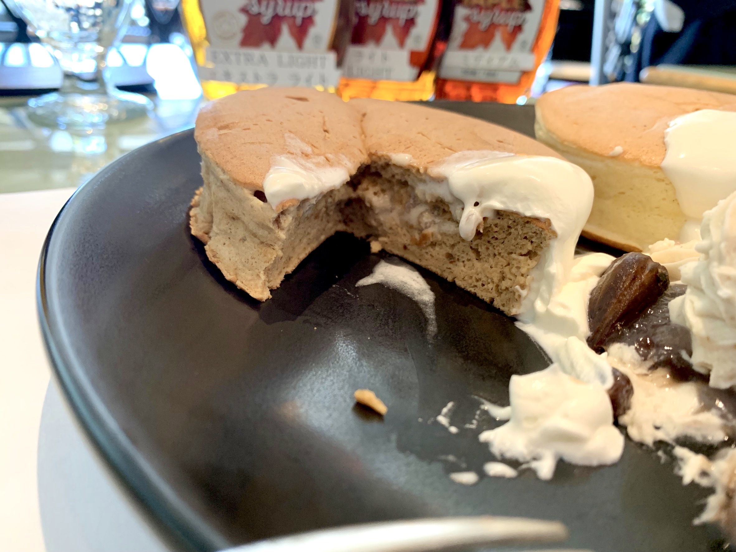 うーん、美味しい!クリームも、とても軽くてパンケーキに合う!!