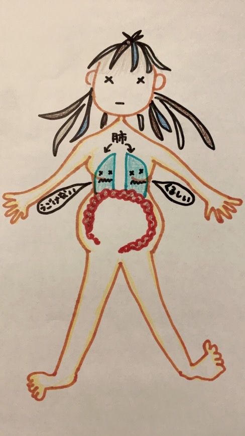 「きっと、お腹の中に溜まった便が肺を圧迫してるから、肺がうまく機能してないんやわ!」
