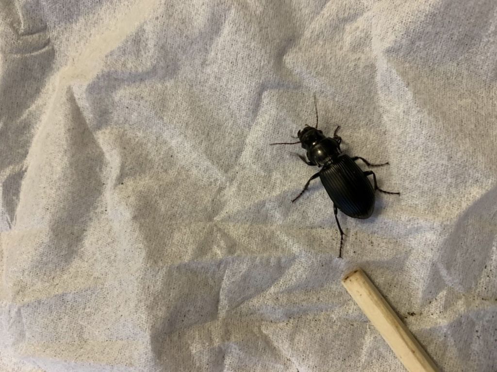 これです。この子がその、ヒョウタンゴミムシ?らしいのです。もーね、娘6歳とバカ息子3歳は大喜びですよ。