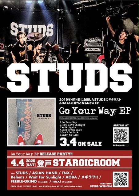 このご時世、いかにリリース前に反響(予約)があるかどうかで決まります!!STUDSを聴いた事のない方も是非聴いてみてください!!よろしくお願いします!!