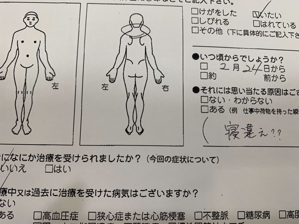 症状の欄には、正直に「寝違え?」と書きました。