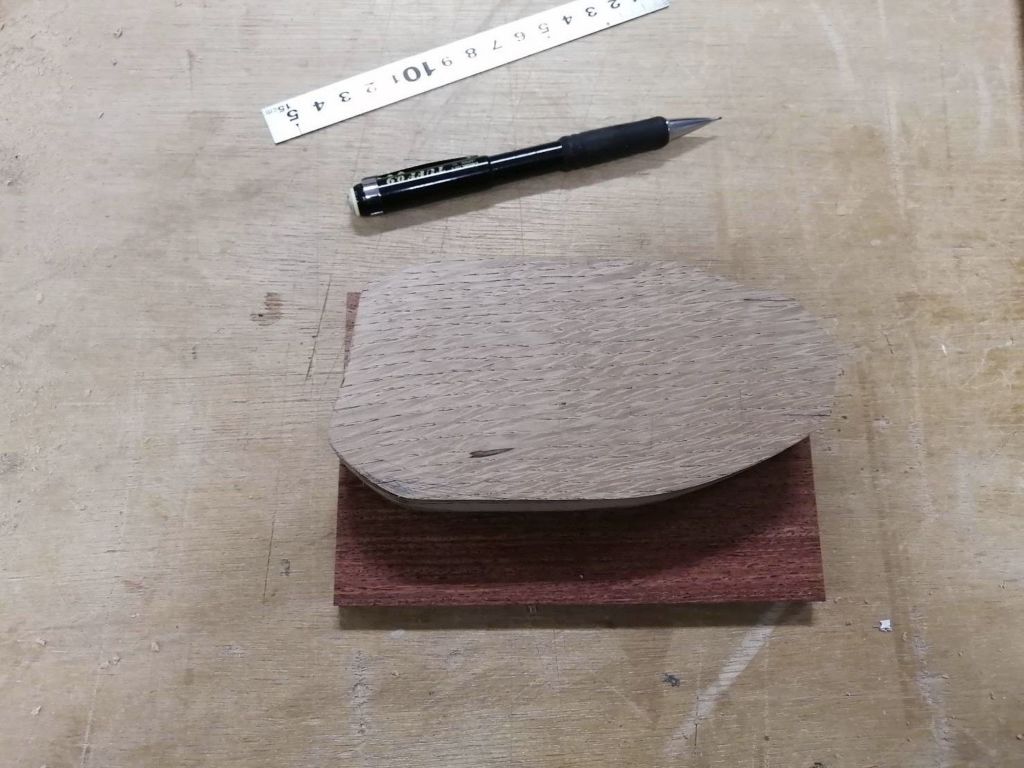 今回はボールが当たる部分の材料を「花梨(カリン)」の木を貼り付けます