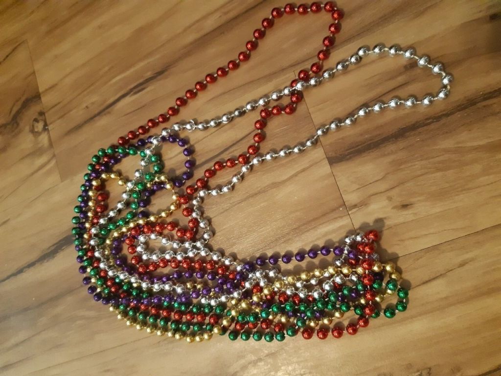 上の写真のようにバルコニーからビーズネックレス(一粒真珠くらいの大きさ)を投げ飛ばしてそれを通りにいる人たちがキャッチするというもの。