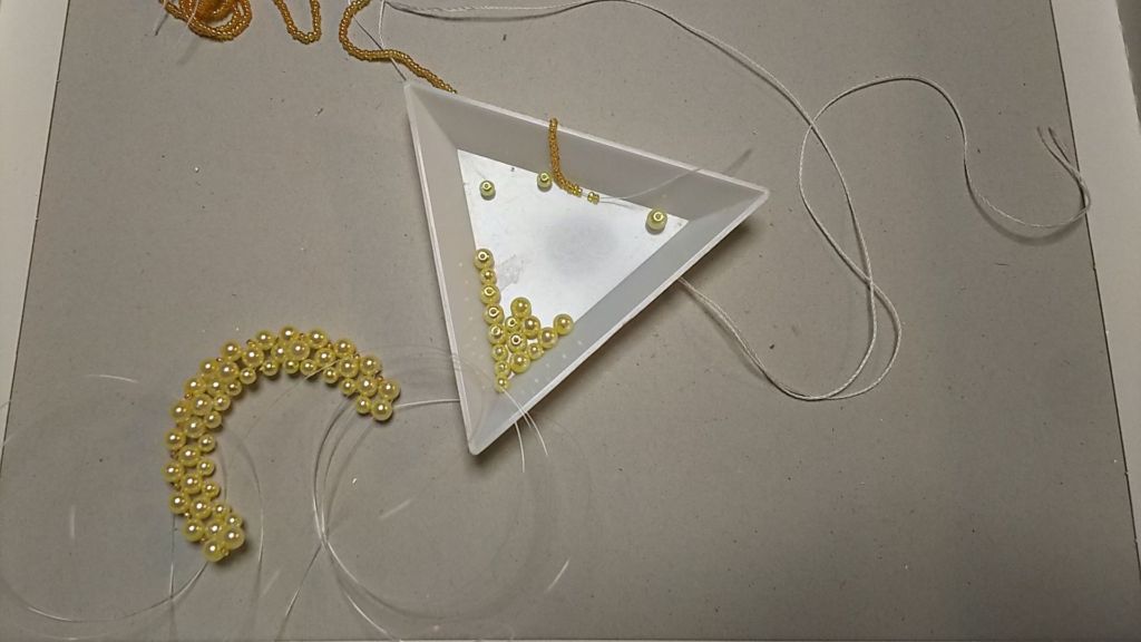眼鏡をかけてレシピを見て、ビーズを通す時は裸眼で・・・とやっていたら、思っていた以上に時間がかかりました(^_^;)
