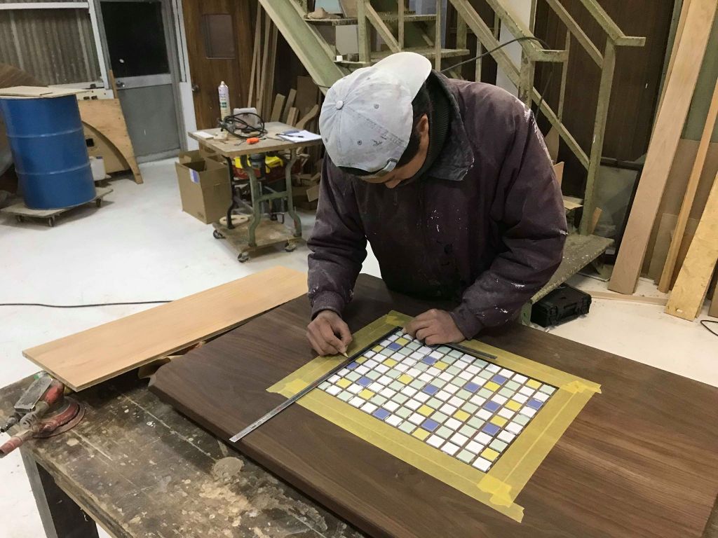 無垢ウォールナット×モザイクタイルのお洒落で贅沢なオーダーメイドテーブルを製作させて頂きました。