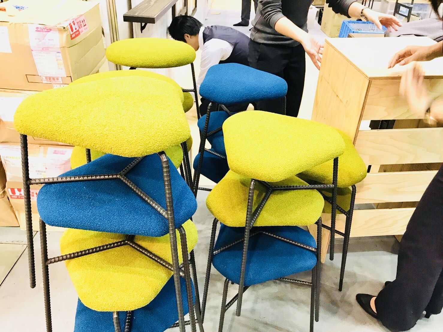 準備のためみなさんお忙しそうで、テーブル&スツールはチラ見えな感じですが、いやはや色鮮やかで惹きつけられますね!