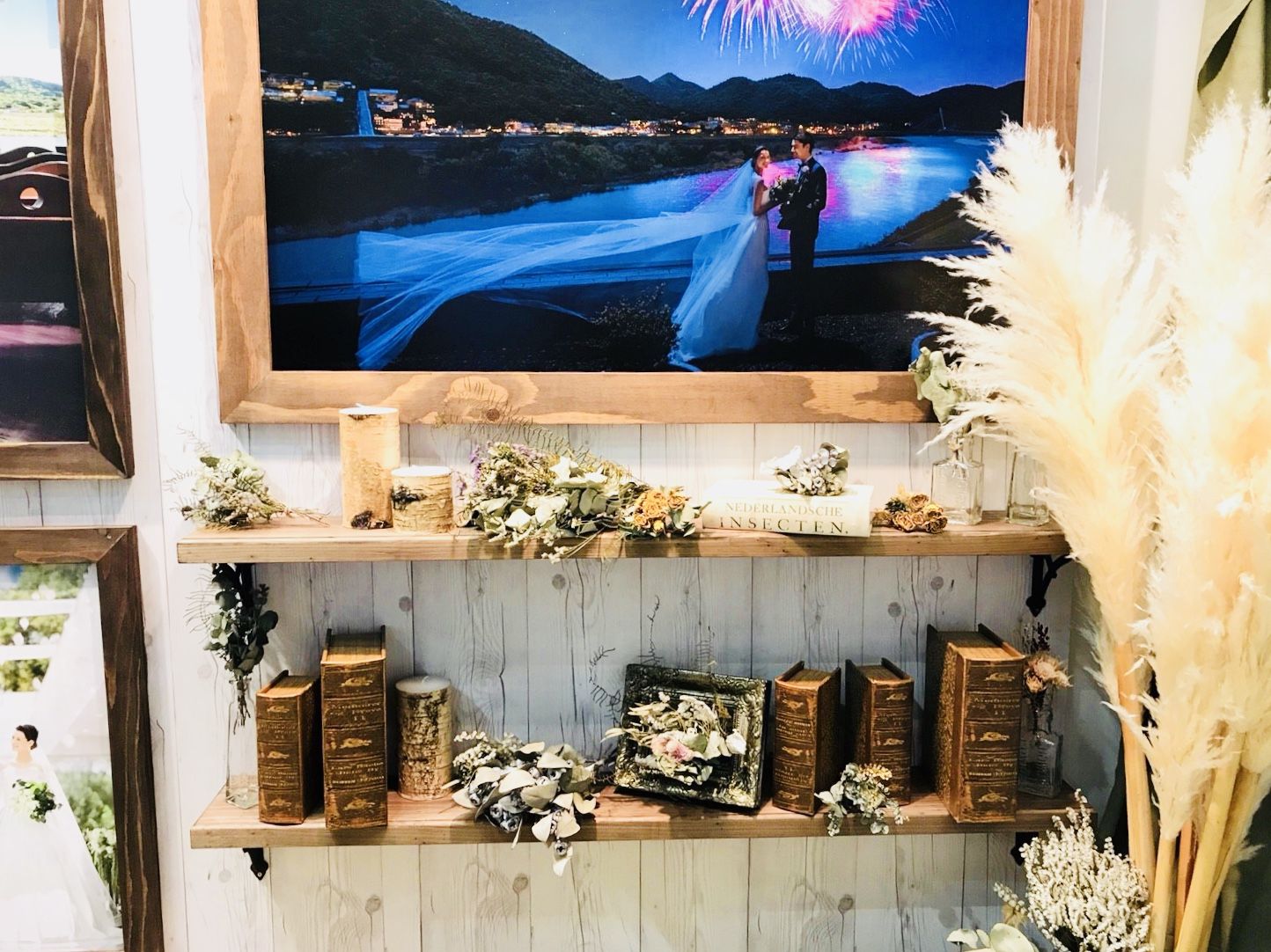 ドライフラワーを使用したボタニカルなインテリアがよく映えます。