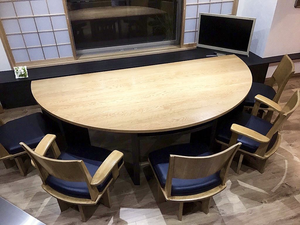 以前にブログでご紹介したのは、オークを使用した半円テーブル。