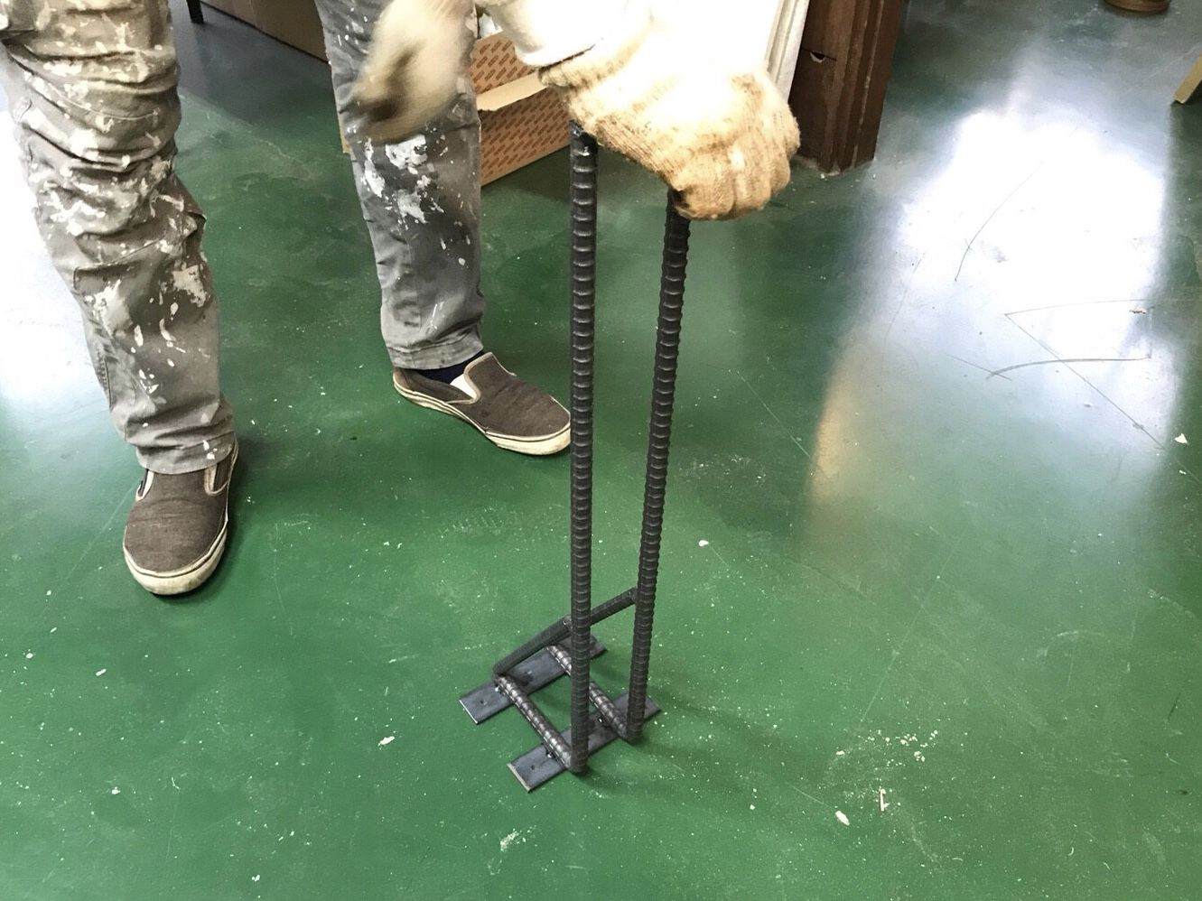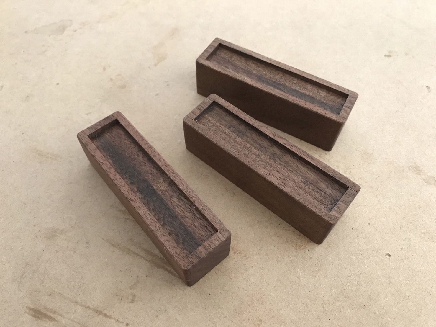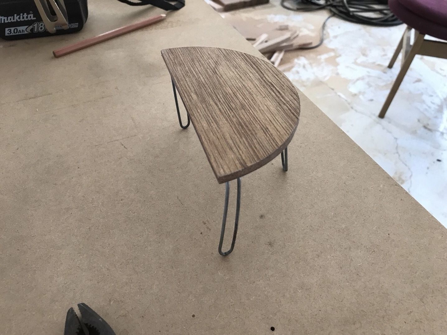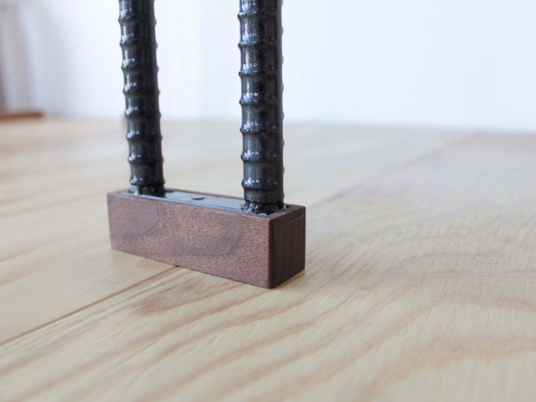 また、鉄脚そのままだと床が傷つきやすいので、天板と同じウォルナット材を履かせることに。