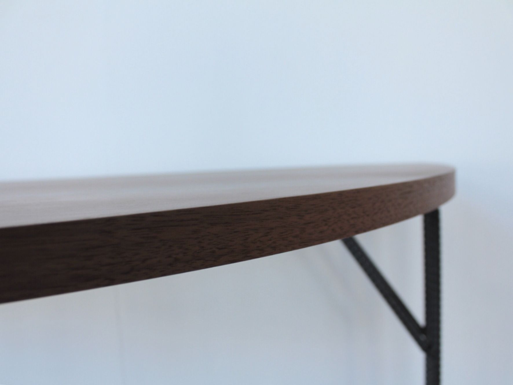 上品な存在感、華奢なライン、ウォルナット×アイアン脚の半円テーブル