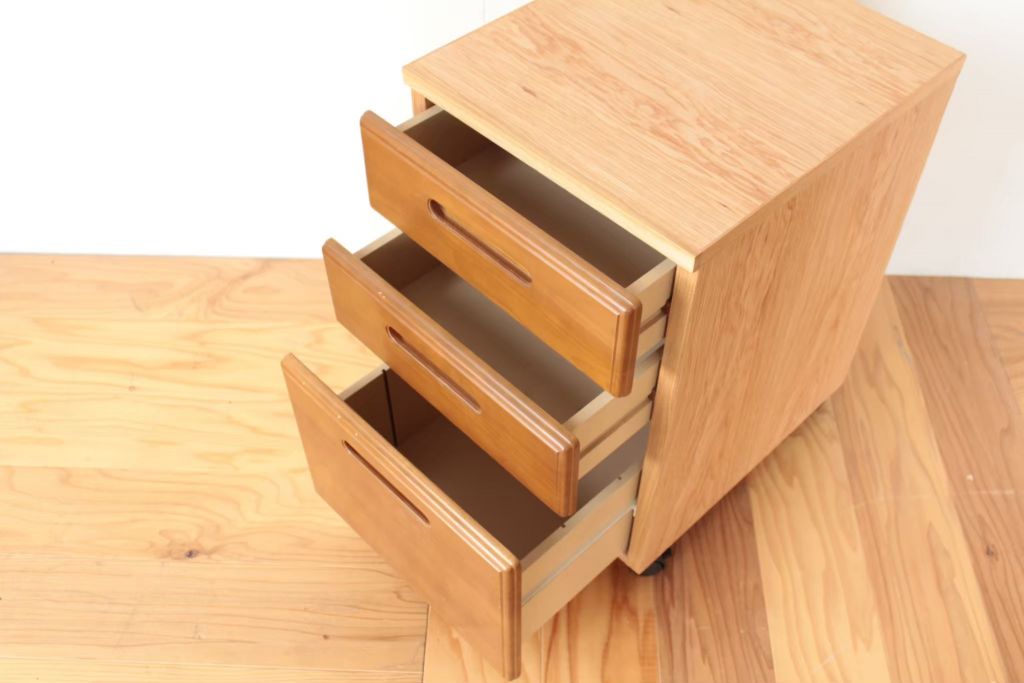 引き出しはそのままに、本体となる箱体をオーク材で新しくつくり、スタイリッシュに生まれ変わりました。