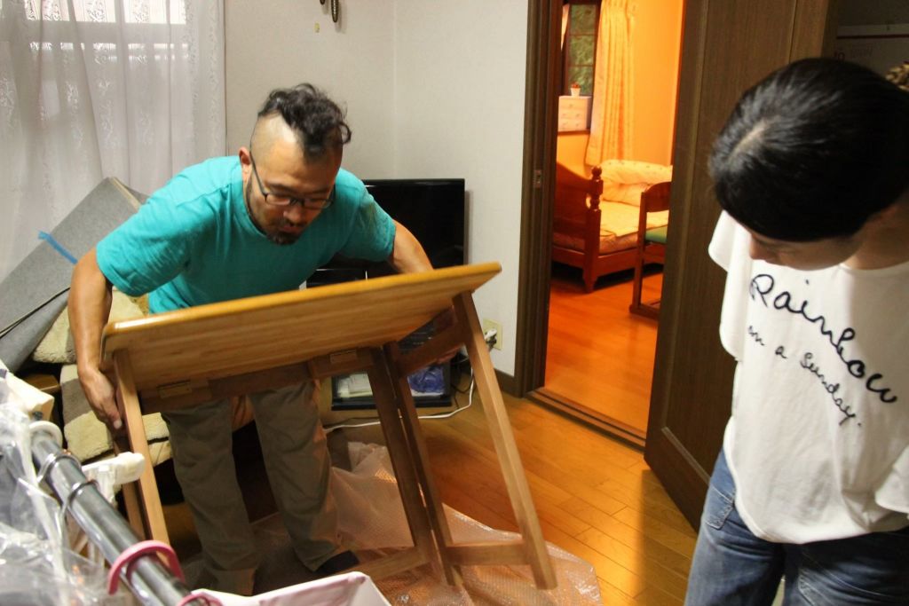 お客様のお部屋はお二階だったのですが、この通り家具作りたいおっさんが一人でラクラク運び込むことができました♪