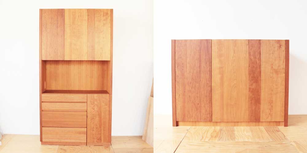 無垢チェリー材のキッチンボードを本棚にリメイクしました。