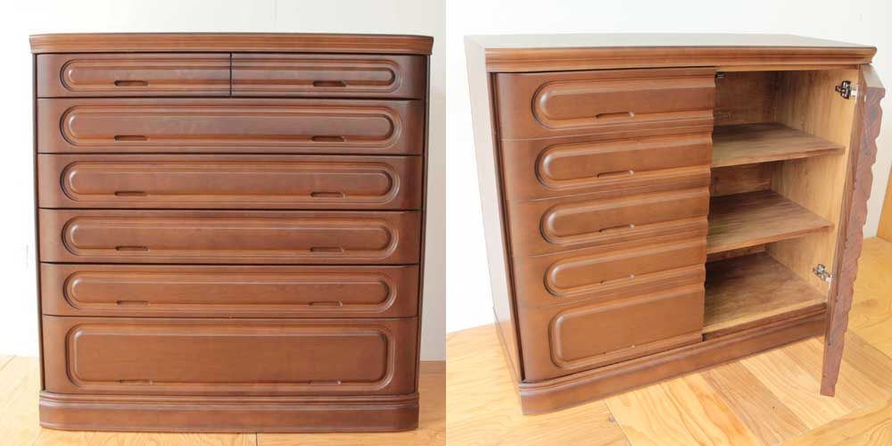 こちらがリメイク前の整理タンス。そのままのサイズでは圧迫感があるということで、6段の引き出しを5段分にして奥行も縮めることになりました。使わない引き出しはセットでご依頼いただいた別のリメイクに生かしています。