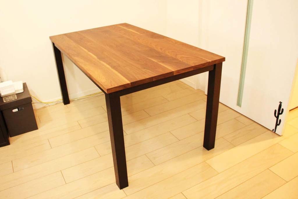 アイアン風ブラックに仕上げた脚で、モダンな雰囲気のダイニングテーブルになりました。