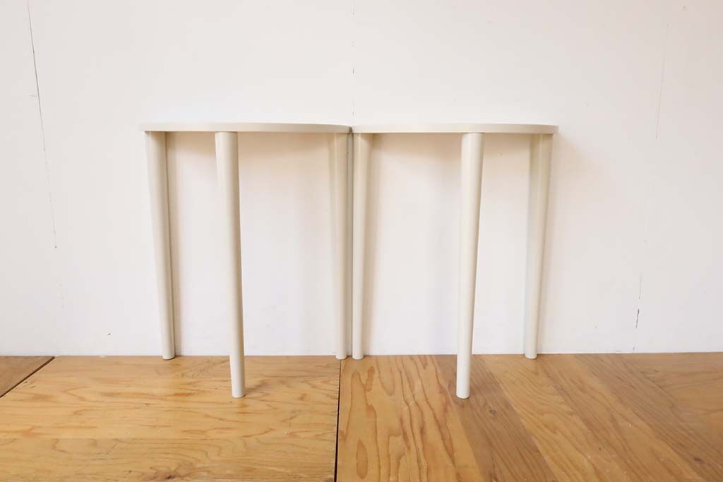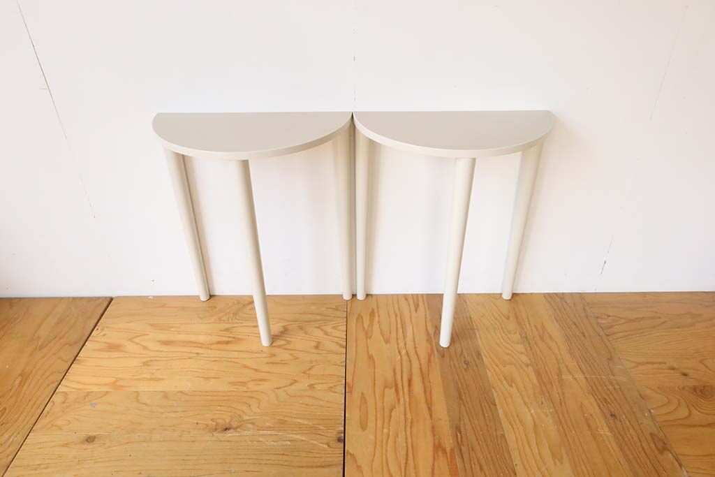 はじめはサイドテーブルとして使いたいとのご希望から始まり、最終的には、書斎やリビングなどさまざまな場所に置けるよう、2台の半円形テーブルにリメイクすることになりました。