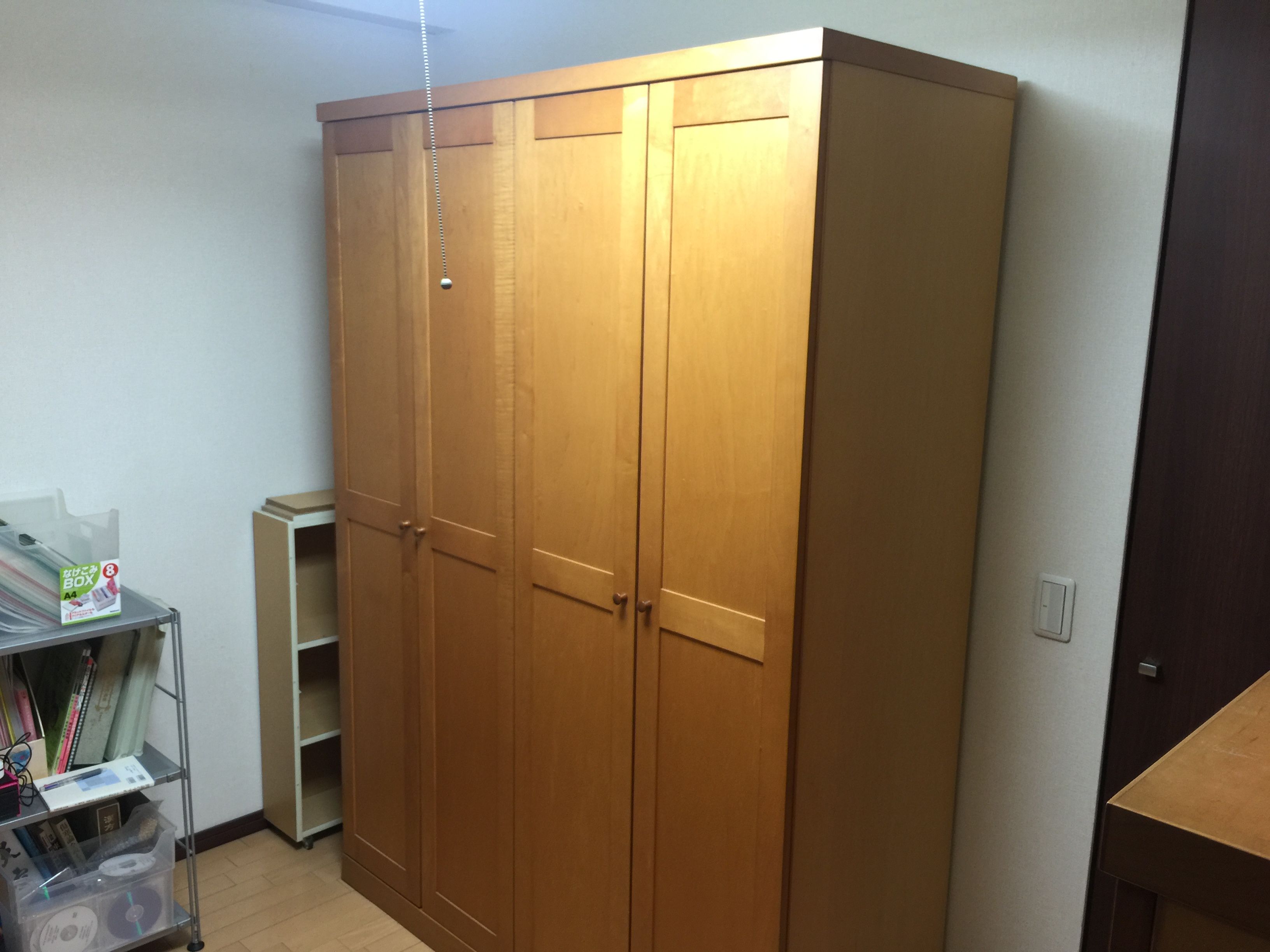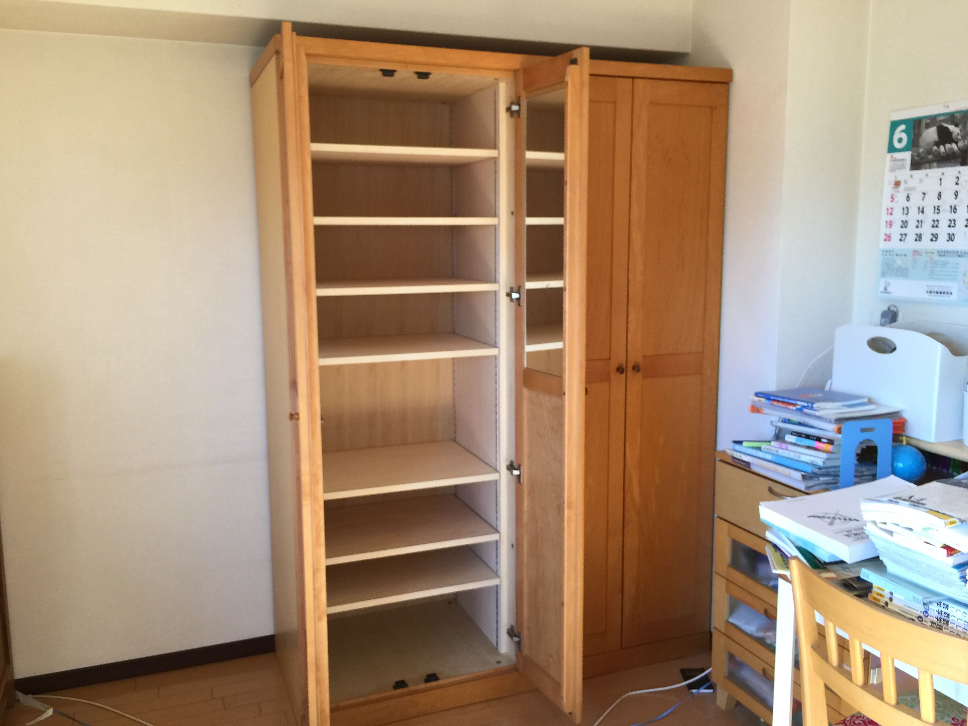 というものでした。こちらの洋服タンス、ご結婚の時に購入された婚礼家具です。それ以来ずっとご愛用されていたもの。でも、お子様が大きくなって生活スタイルも変わり、「リビングで本棚として(でも見た目はそのままで)使いたい」というご相談でした。