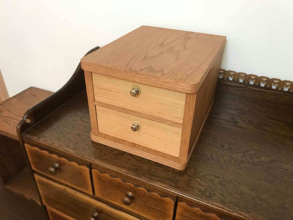婚礼タンスの中にある貴重品を入れる引出しを小引出しに仕上げました。使い馴染んだツマミ(取っ手)が味わい深いです。