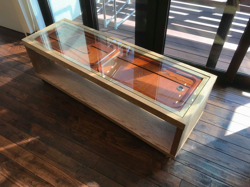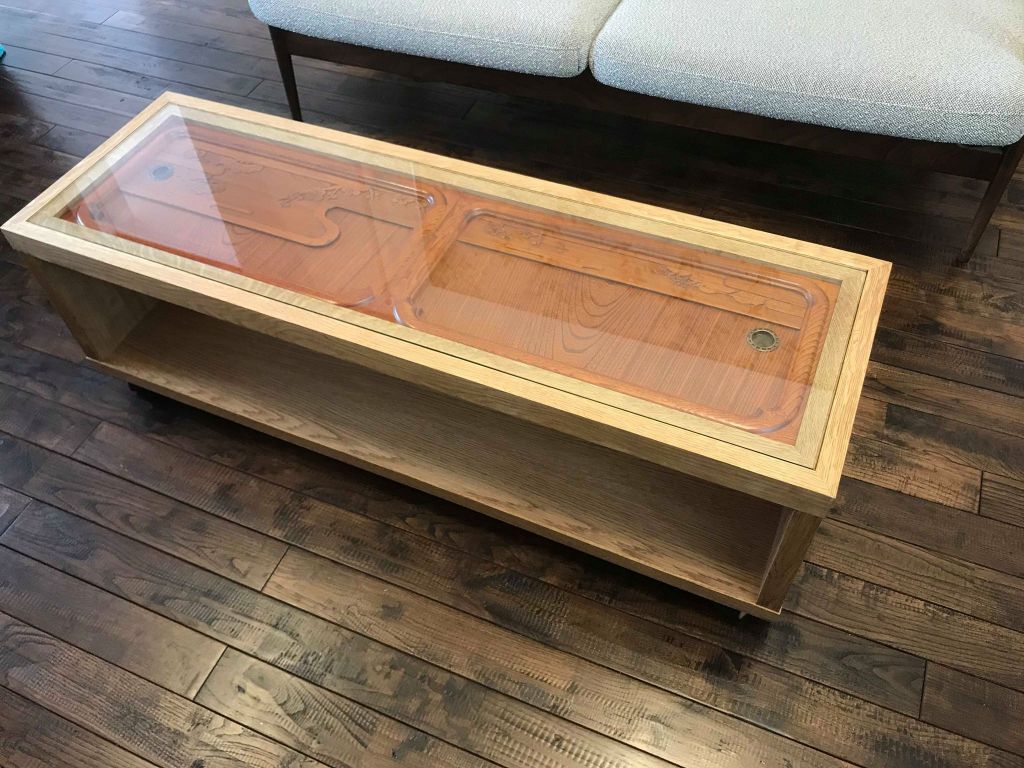 欅の婚礼箪笥の扉でつくったキャスター付きセンターテーブル