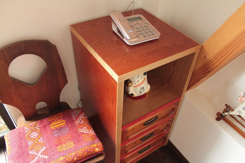 欅の婚礼箪笥をリメイクして引き出し付きの電話台をつくりました。