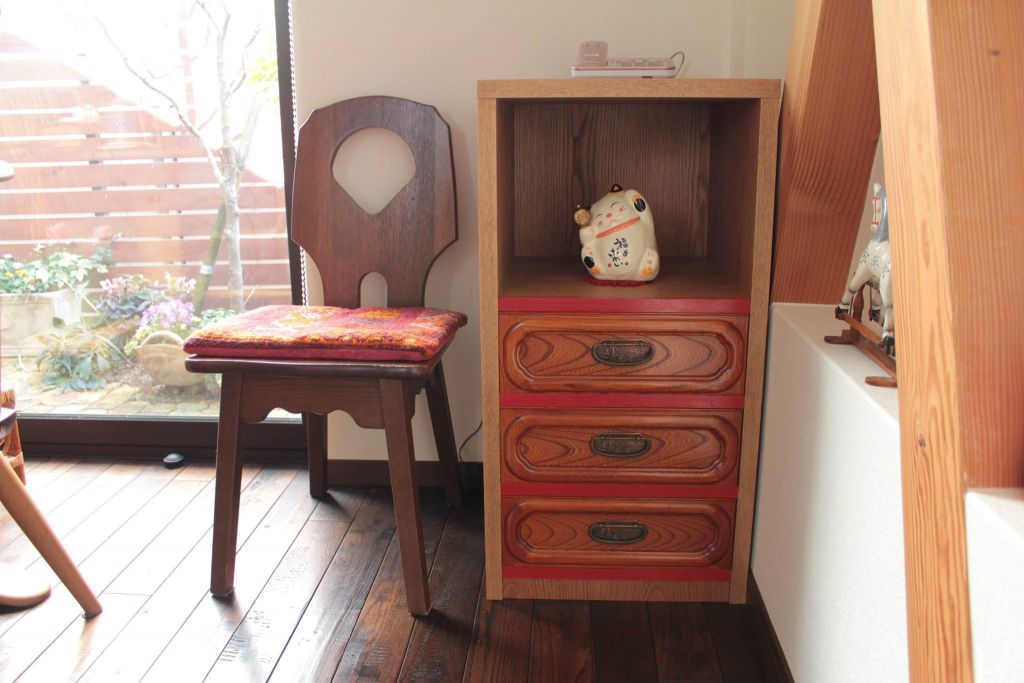 日本には昔から「赤」のものが結構あって、古い箪笥なんかに以外と相性が良いんです。