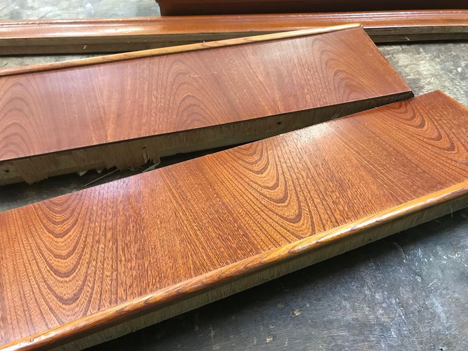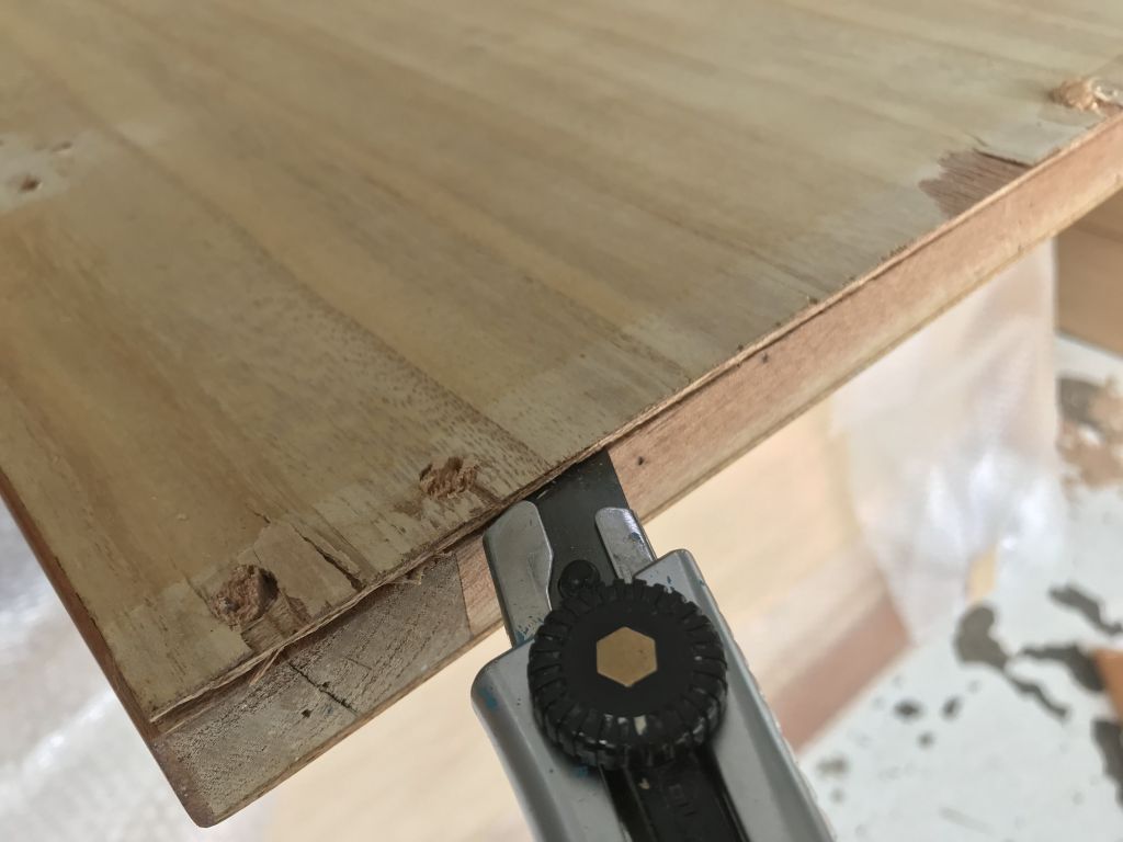 この電話台の形をつくる前の「板材」のパーツをつくる所、通常(新たな材からつくる時)だと半日も要らない作業なのですが、