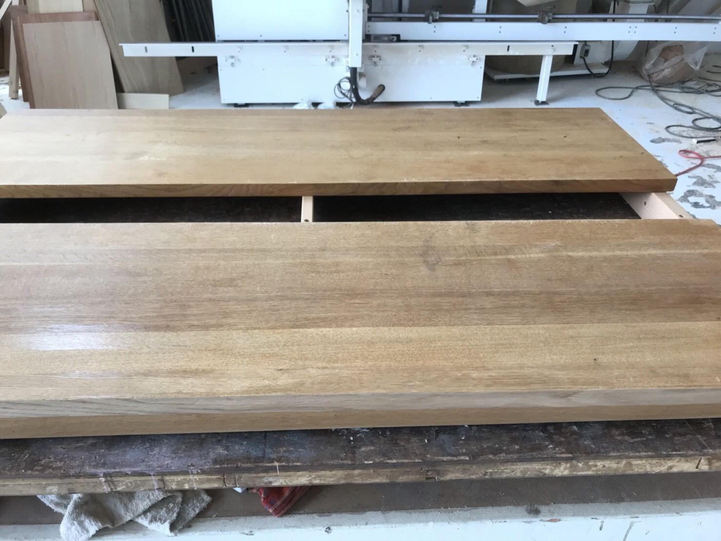 お客様から、こちらを「半分にカットして、普段カウンターのように使えるようにしたい。」とご依頼いただきました。