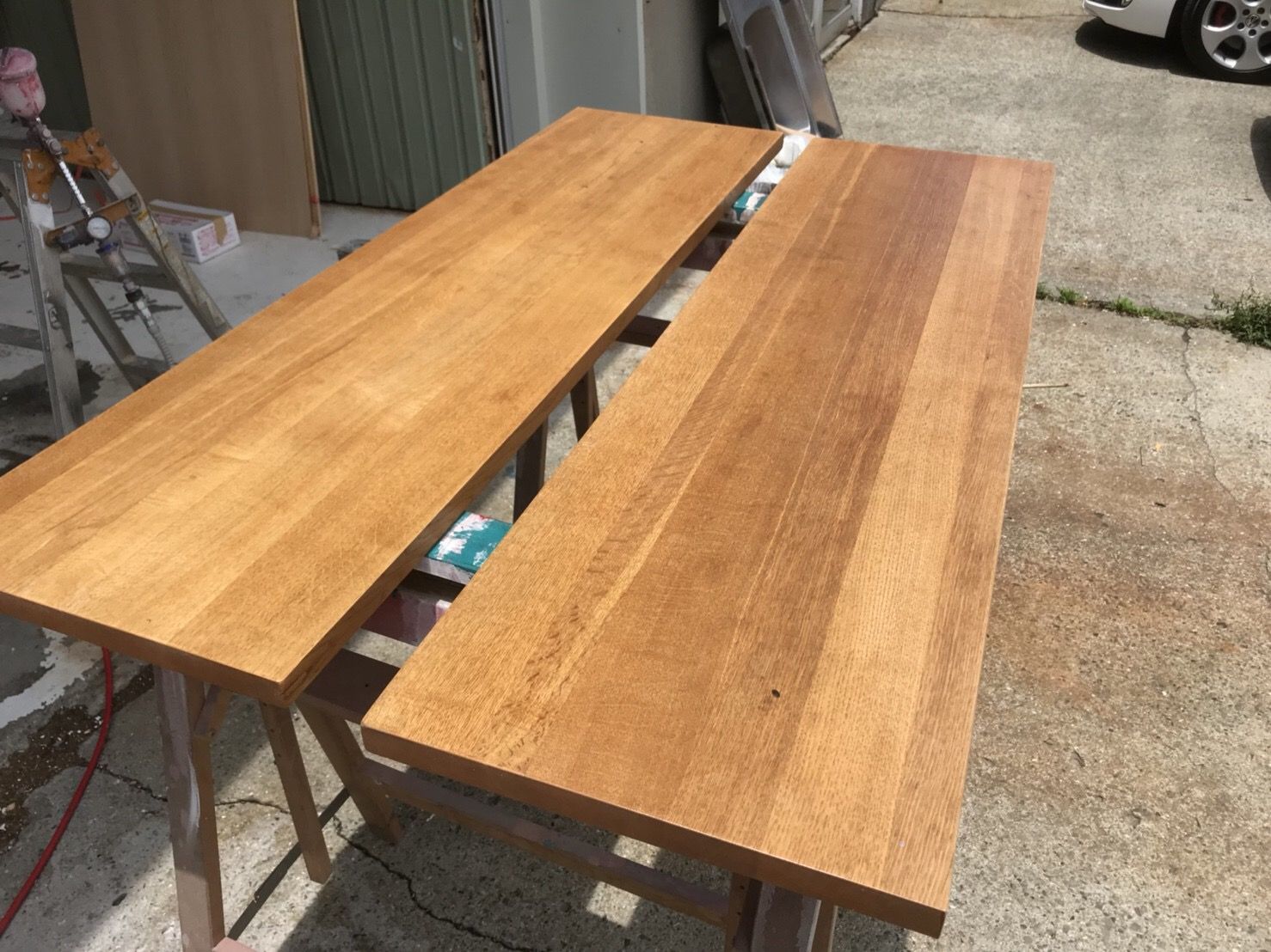 と、いう事で天板全体を上から水性ウレタンで塗装する事にしました。