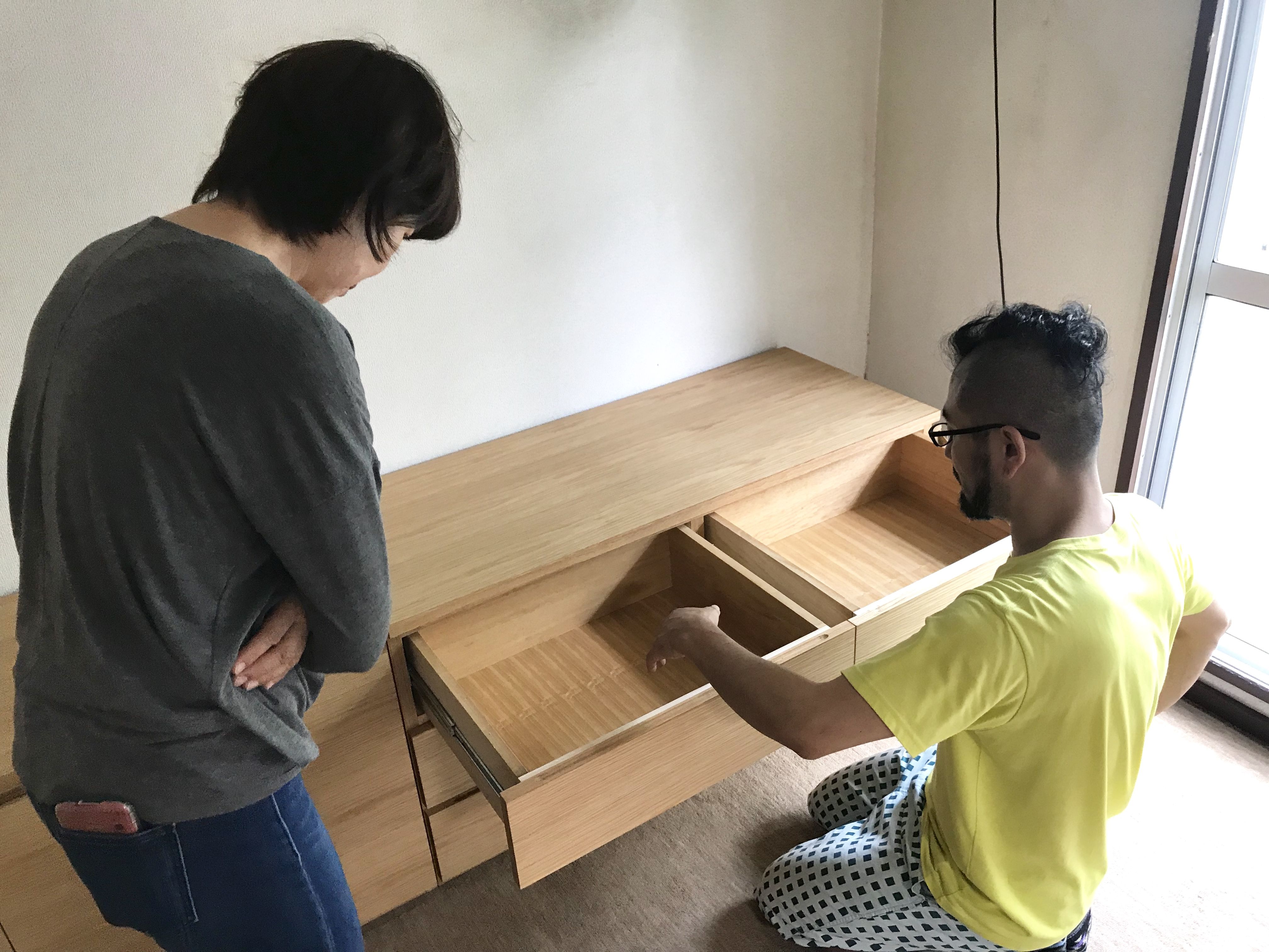 そして、お客さまの婚礼家具や、リメイクした家具を置く予定のお部屋を実際に拝見しながら、デザインを詰めていきました。