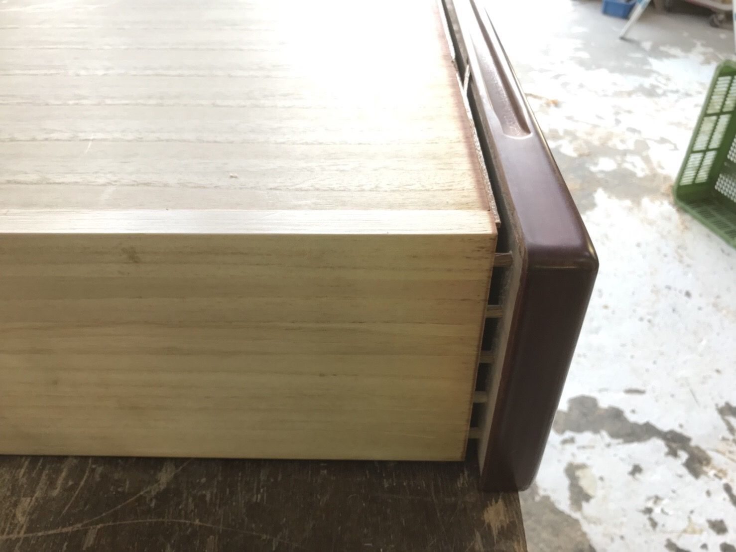 元々濃色だった婚礼家具がナチュラルスタイルなリビングボードに。ガラリと雰囲気が変わりましたよね。それもそのはず。なぜならこちらは、婚礼タンスの中身だけ使用してリメイクしたんです!