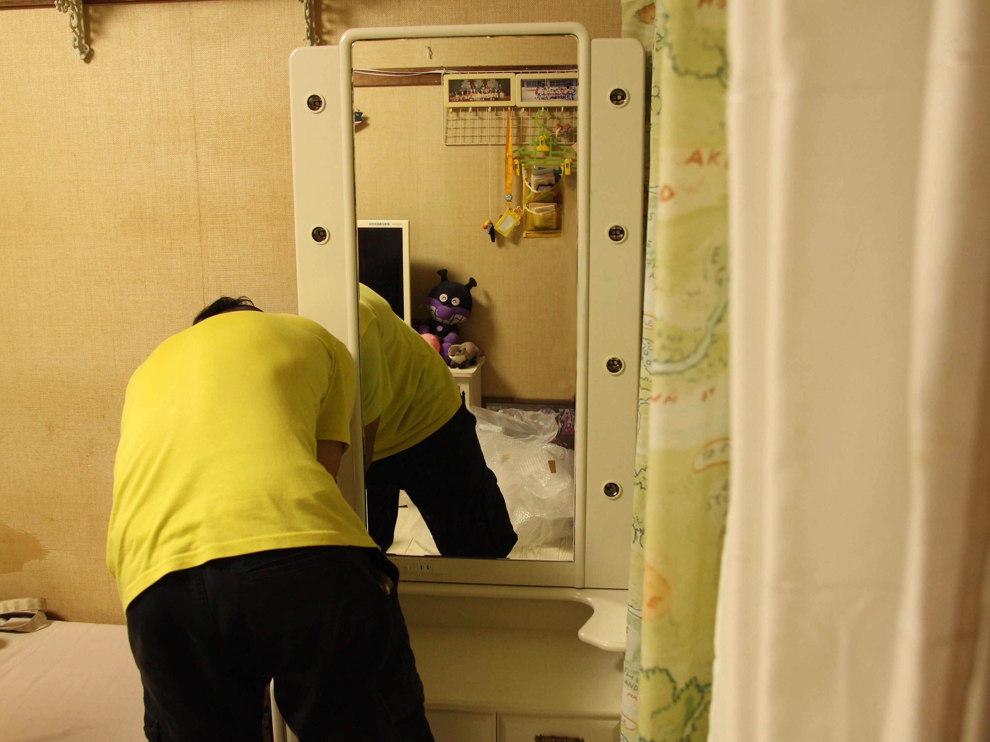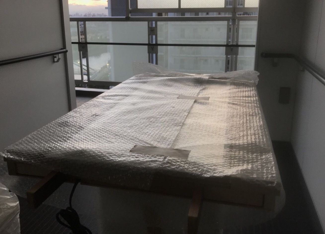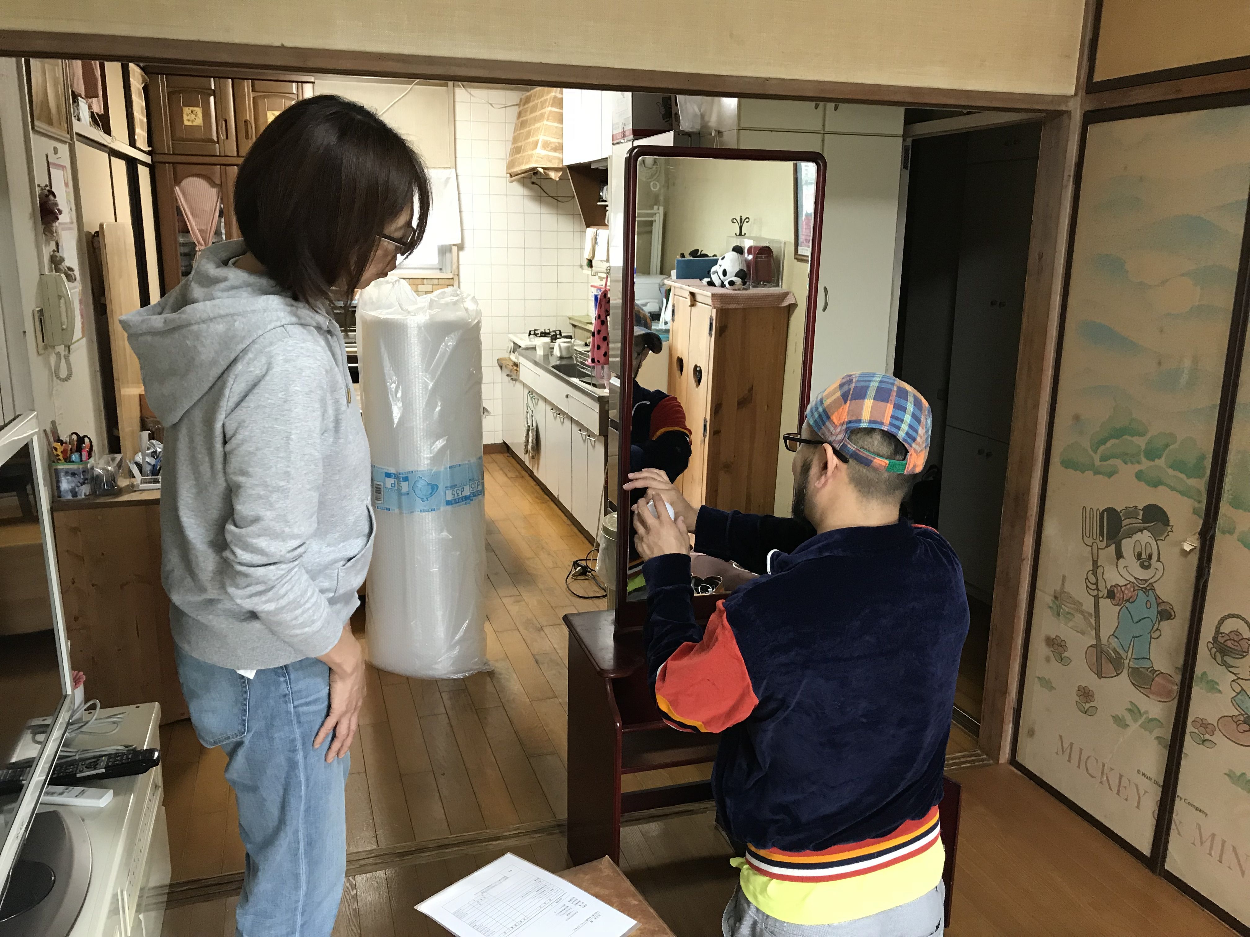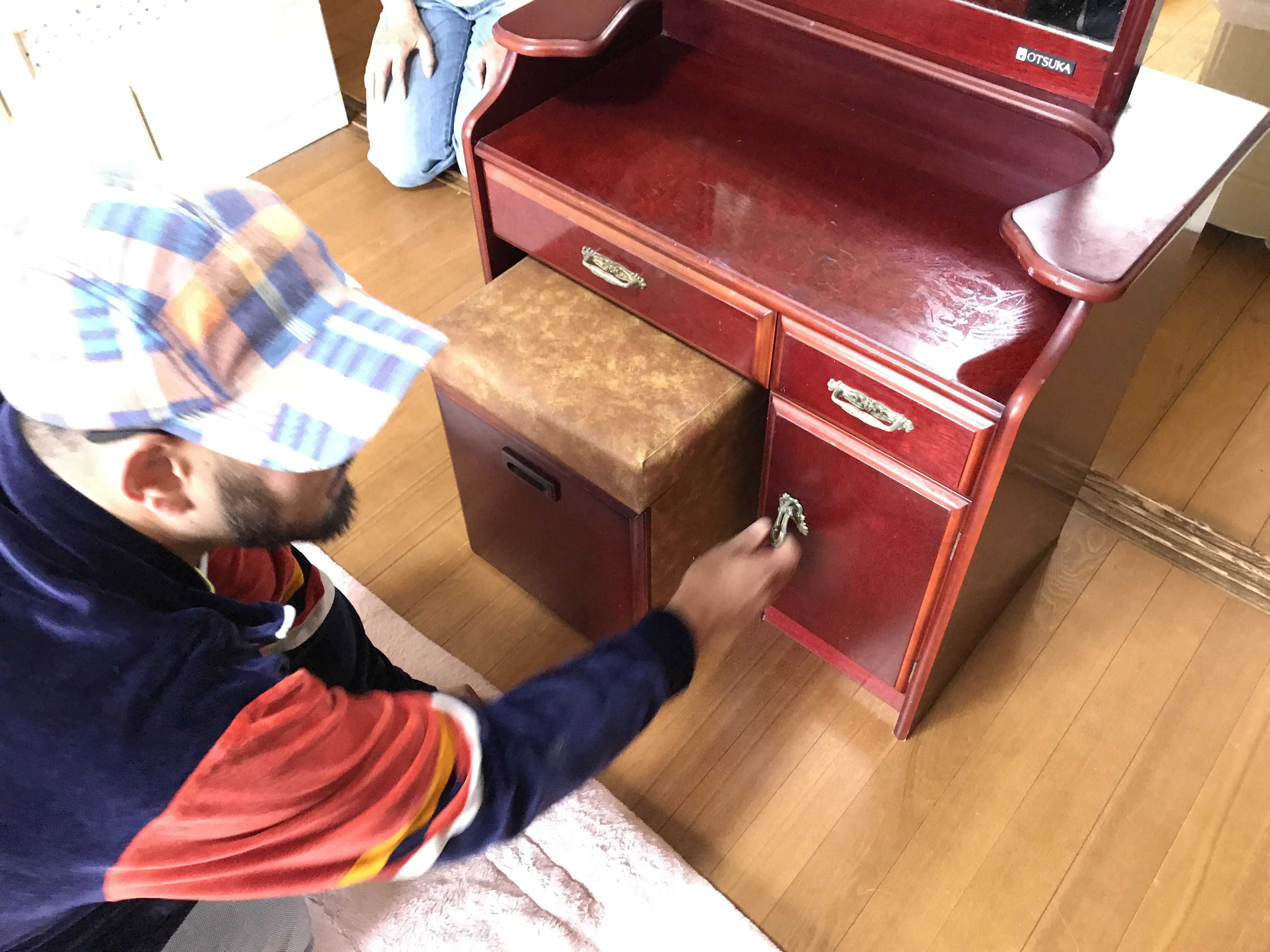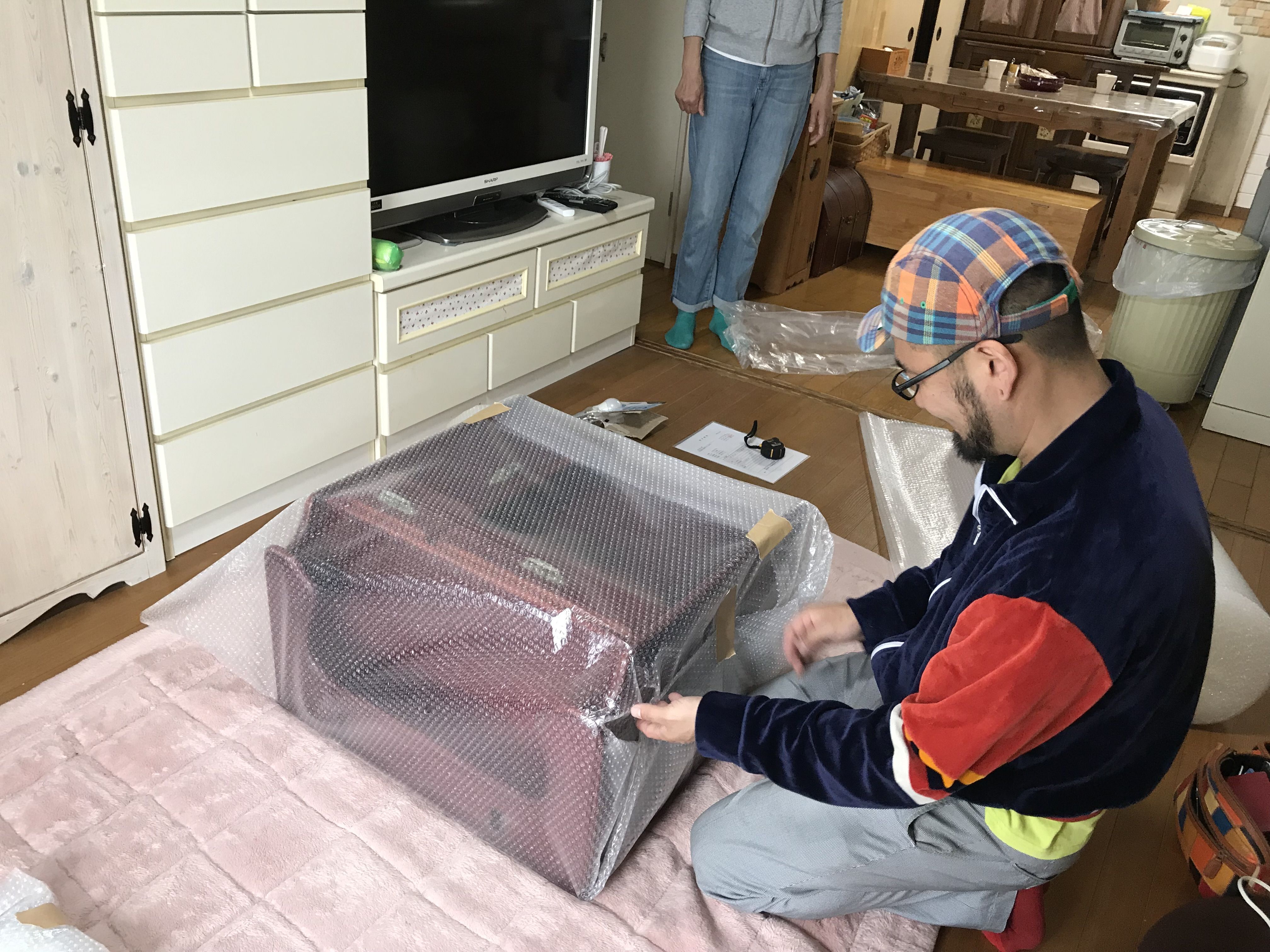 (↑家具作りたいおっさんも「腕がなる〜!」とお客様のドレッサーを嬉しそうに梱包していました。)
