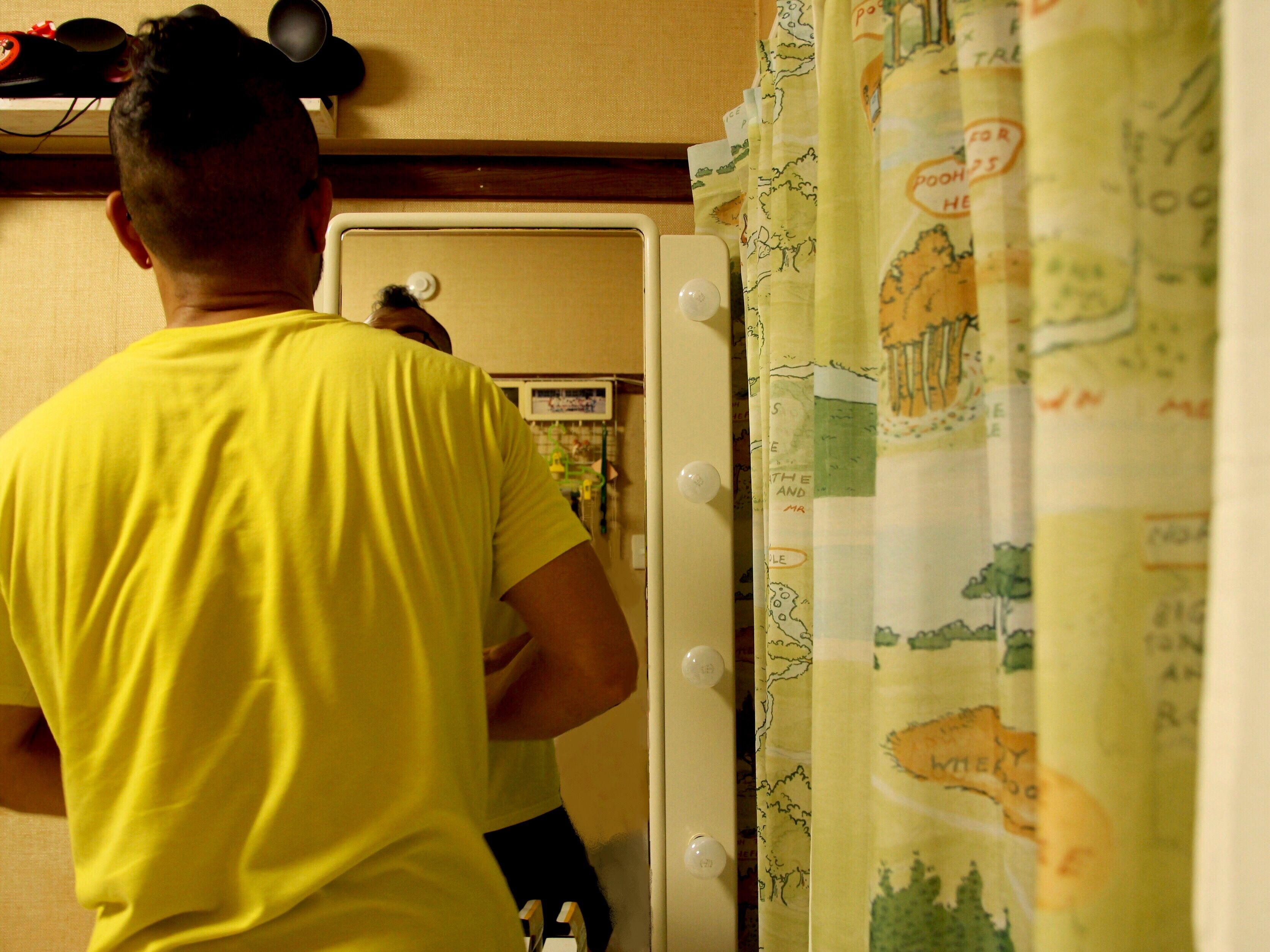 鏡の両サイドに8つ電球を取り付け、いよいよ点灯です!
