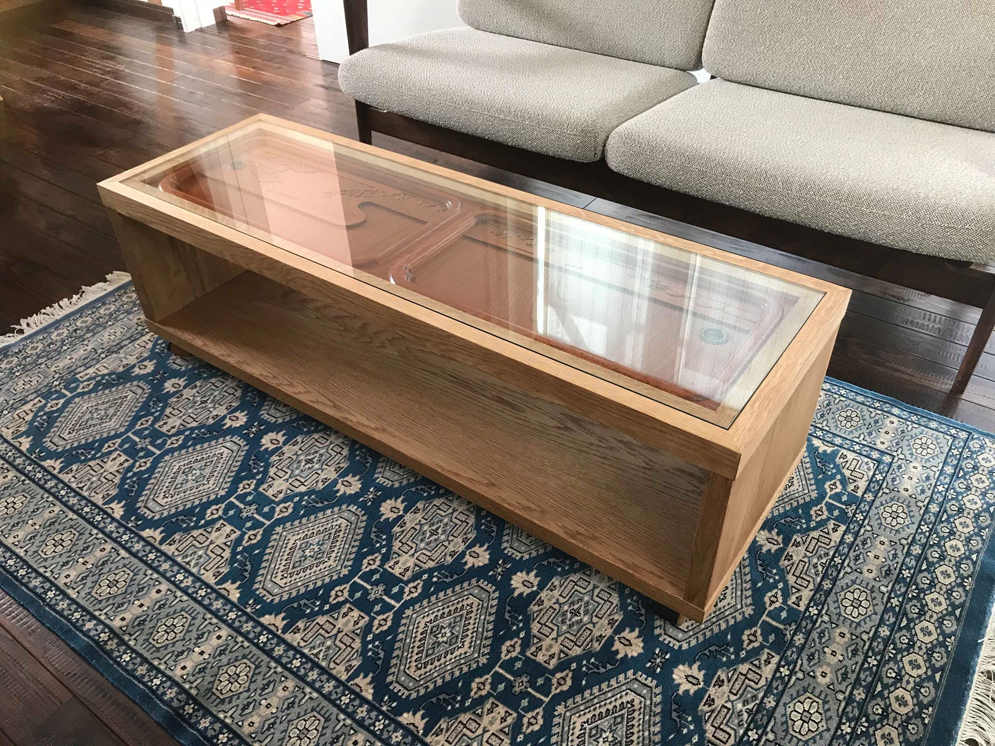 今までに、美しい扉を生かしたセンターテーブル、引き出しと惻板を生かした電話台、中の桐の引き出しを生かした卓上小引き出しとご紹介してきました。