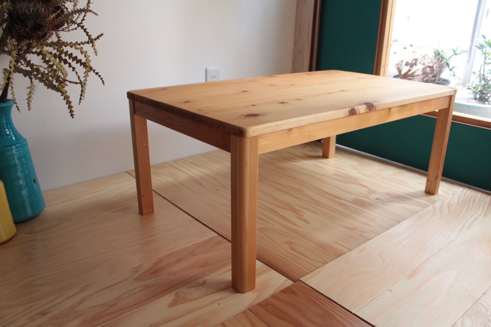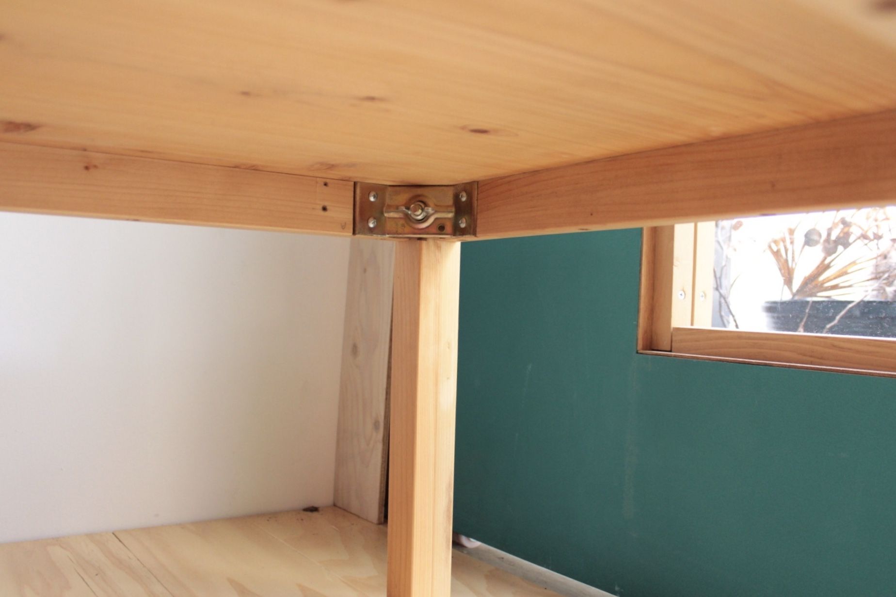 はじめは、コの字型の脚を折りたためる構造のローテーブルを予定していましたが、元の材の強度が足りずにグラグラしてしまうため、お客様とご相談の上、4本脚の組み立て式ローテーブルに変更しました。