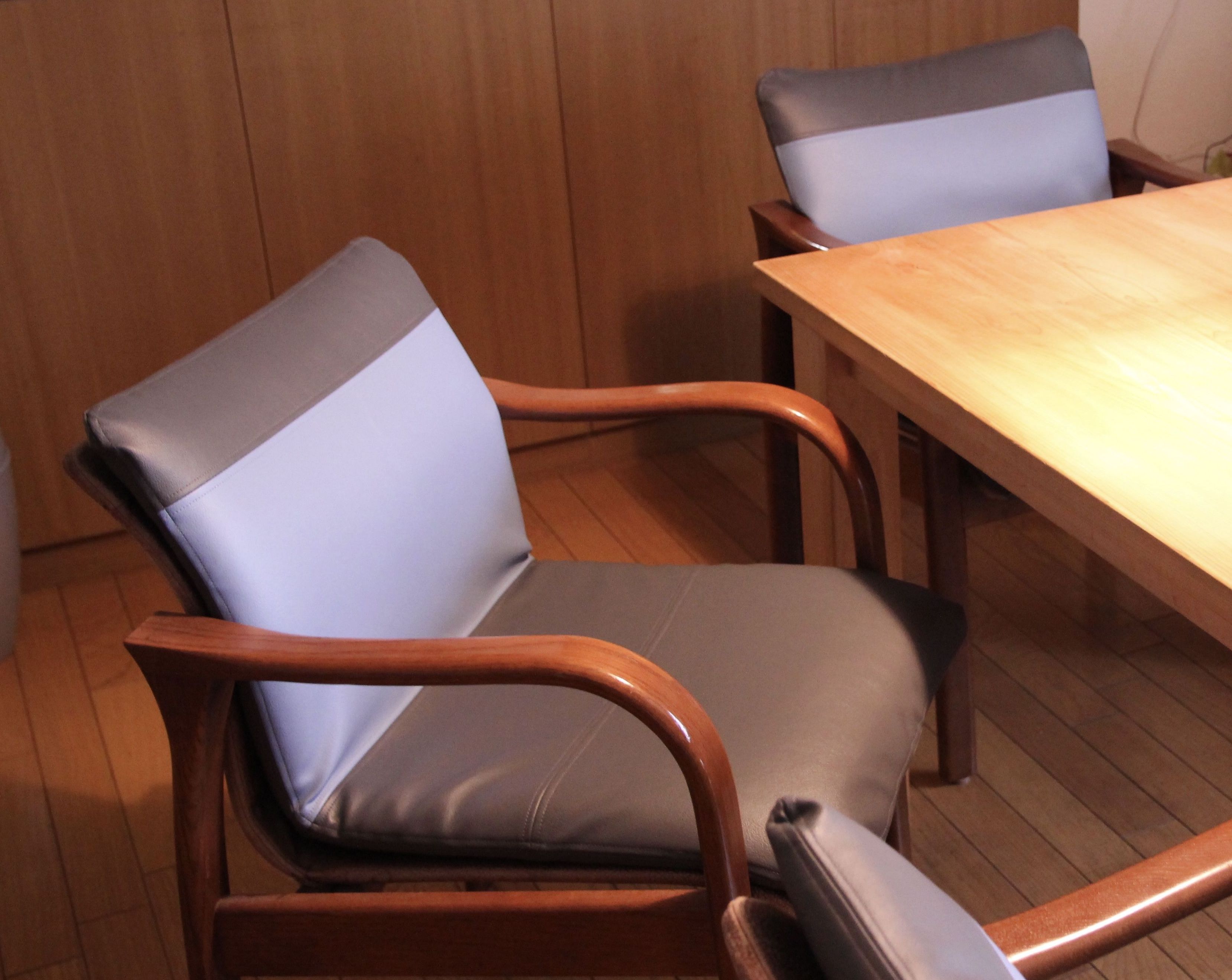 椅子の張替えは「傷んでしまったから直す」ということも多いと思いますが、このように生地の色や種類をかえて楽しむことができるのも魅力の一つです。