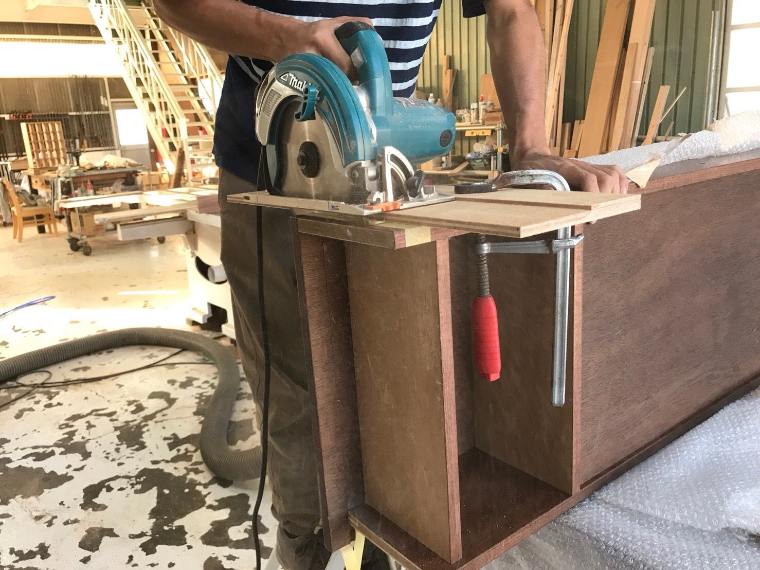 お客様の大切な家具に手を入れるので、後戻りができないリメイク。どこをどう加工できるか、サッと判断できる必要があるんですね〜。